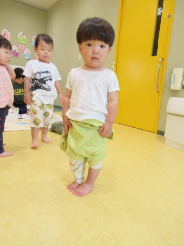 そこで、8月末の個別懇談会で、保護者の皆さまに『子どもたちが、自分で脱ぎ着しやすい衣類を選んであげてください』とお伝えしたところ、早速短いズボンを持ってきてくださいました♪