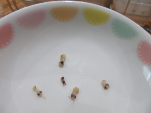福引で2等か3等が当たった気分(ちょっと大げさかなぁ)になった保育者が、見つけたある物をお皿にのせ、子どもたちに見せました。