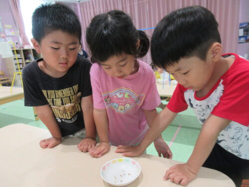 色々な意見はありましたが、私が子どもの頃は、よくシラスの中に色んな魚などの赤ちゃんが入っていたので、それを探すことが楽しくて・・・という事を思い出し、なんだか懐かしさを感じつつ、子どもたちの意見っておもしろいなぁと、つくづく思った保育者でした。