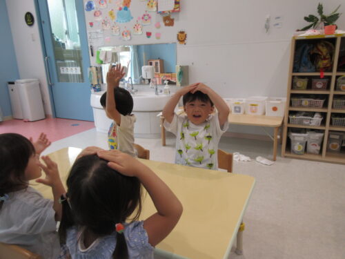みんなで『大きなくりの木の下で』『どんぐりころころ』の歌を歌って