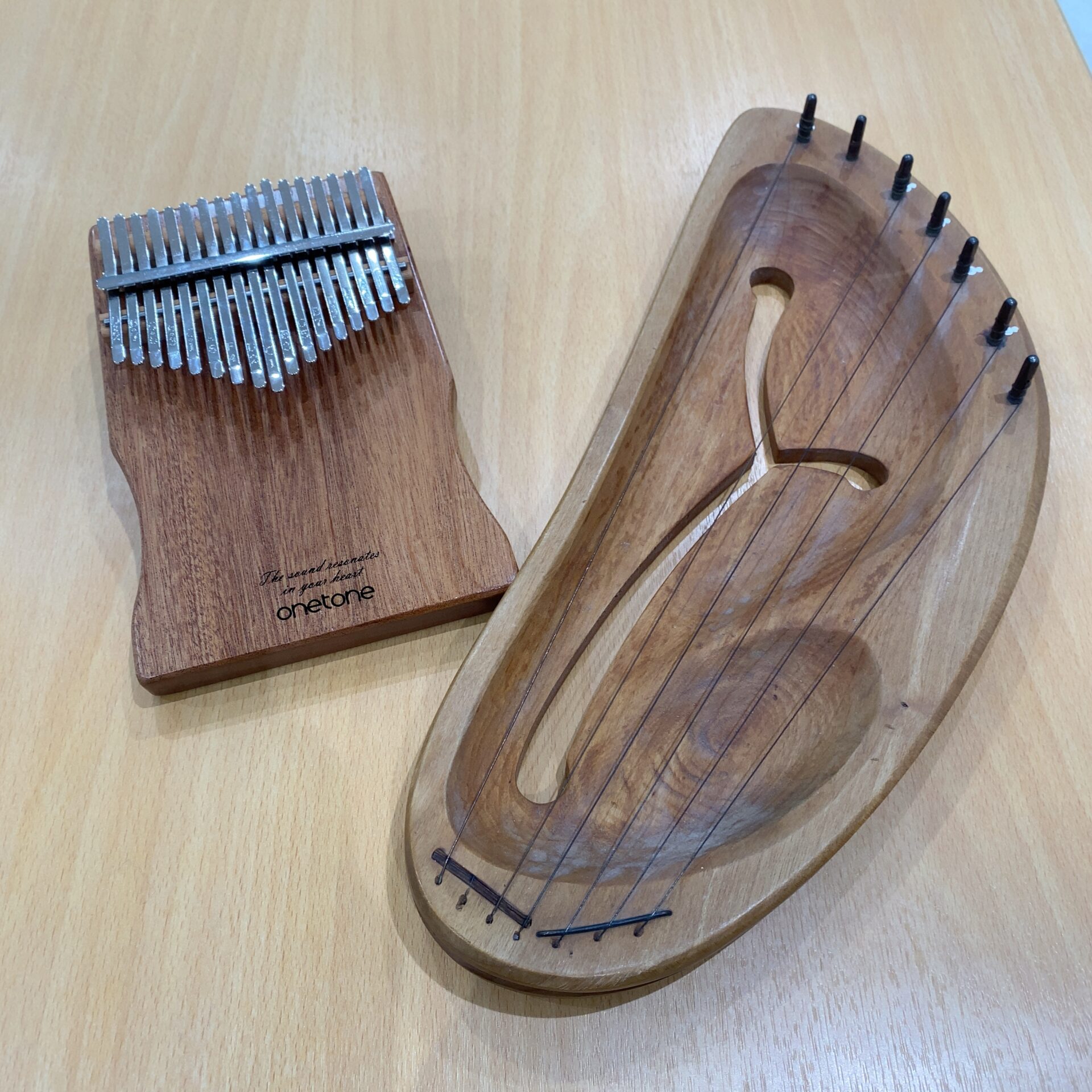 オルゴールみたいな音のするカリンバ、最初に登場した楽器です。