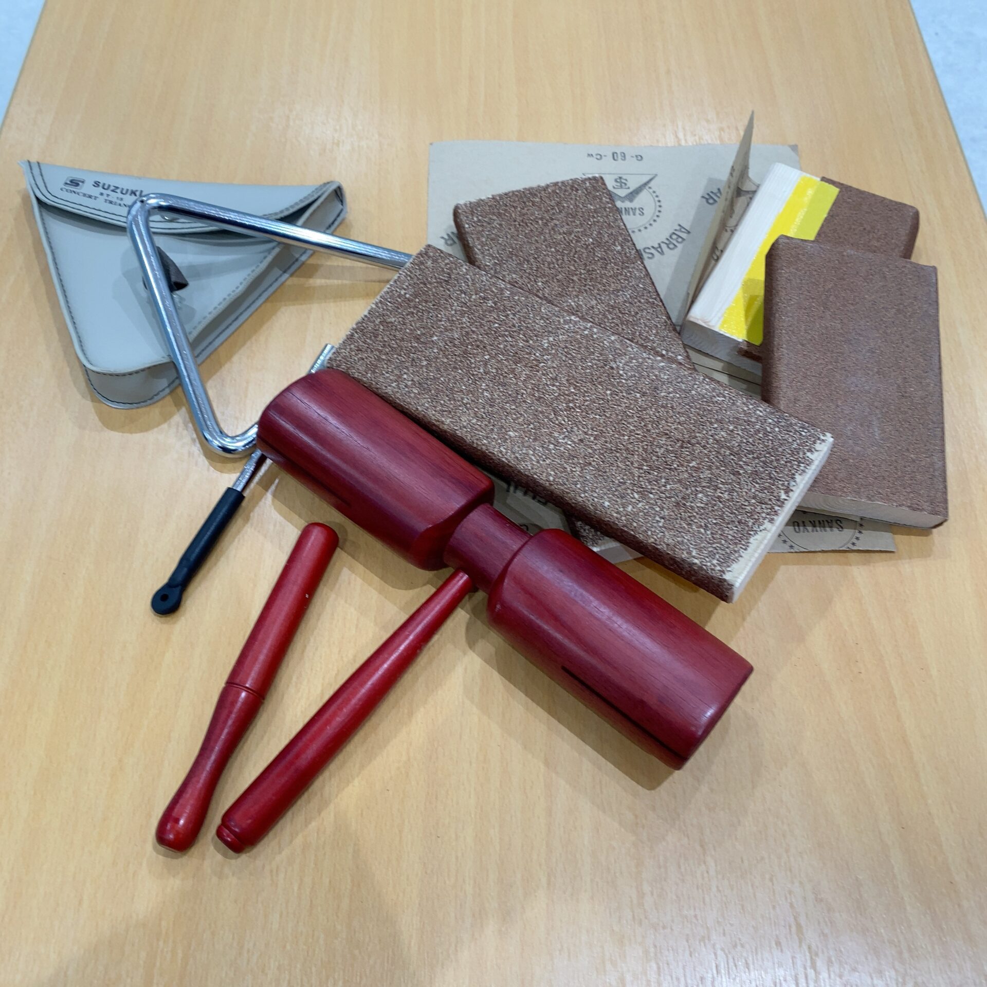 ウッドブロックとトライアングルは、生活発表会で打楽器の演奏を予定しているクラスもあるということで紹介しました。