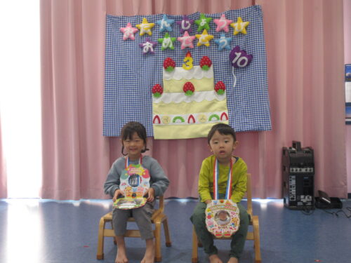 今回お誕生日を迎えたのは、5歳児1名、2歳児2名、計3名のお友だちでした。