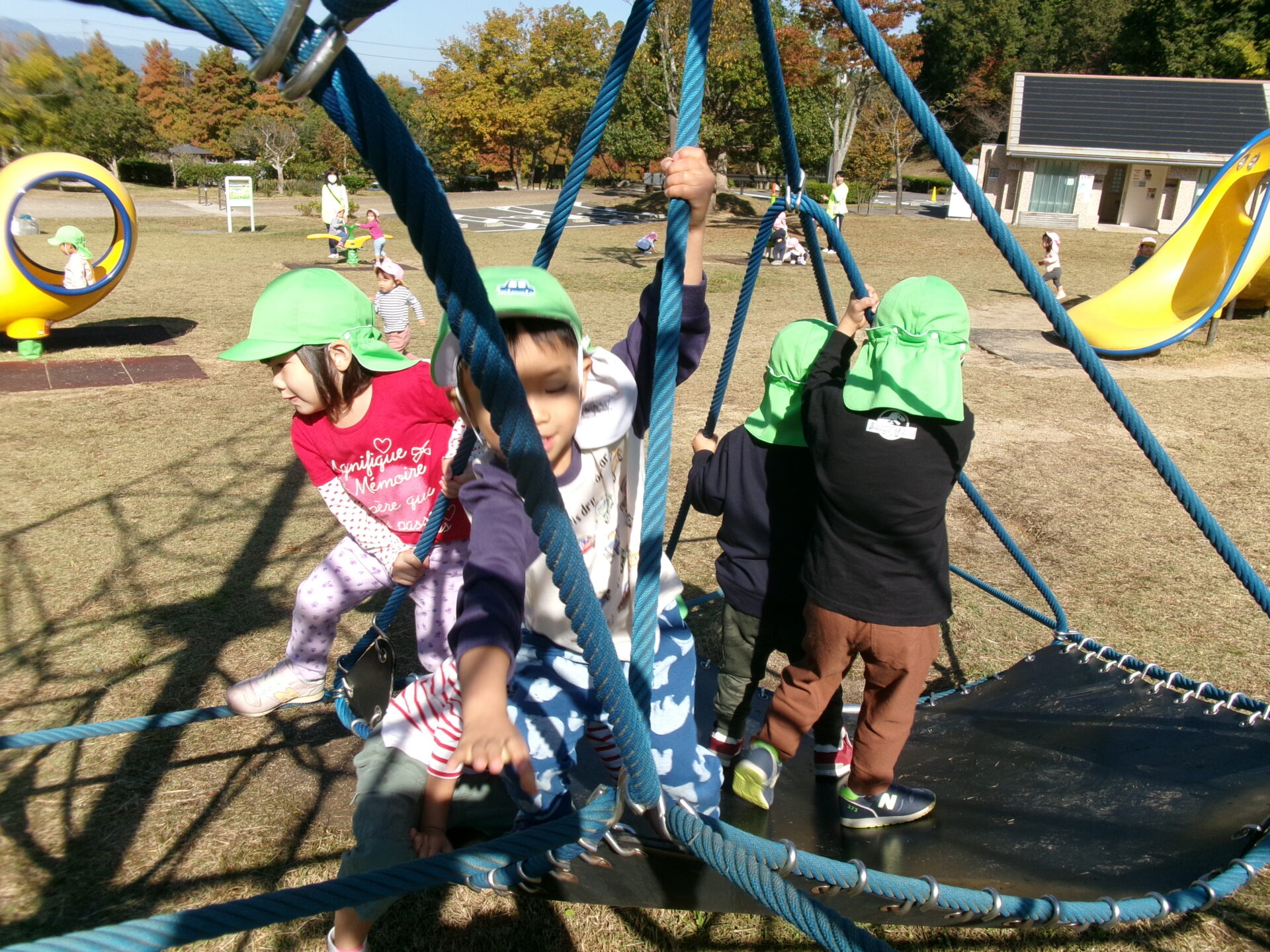 大好きな園バスに乗って、秋の自然に触れて、遊具で遊べてと、大満足のにじチームさんでした。