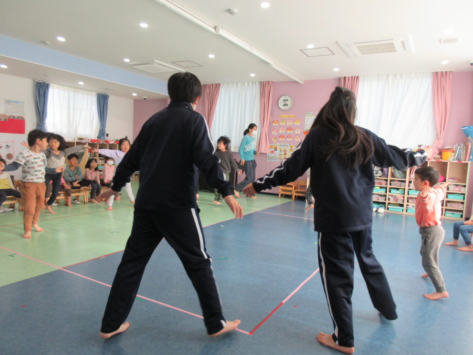 それぞれのクラスで、子どもに話かけたり、一緒に遊んだり、保育の準備や片付け・掃除と、真面目に取り組んでくれた皆さんでした。