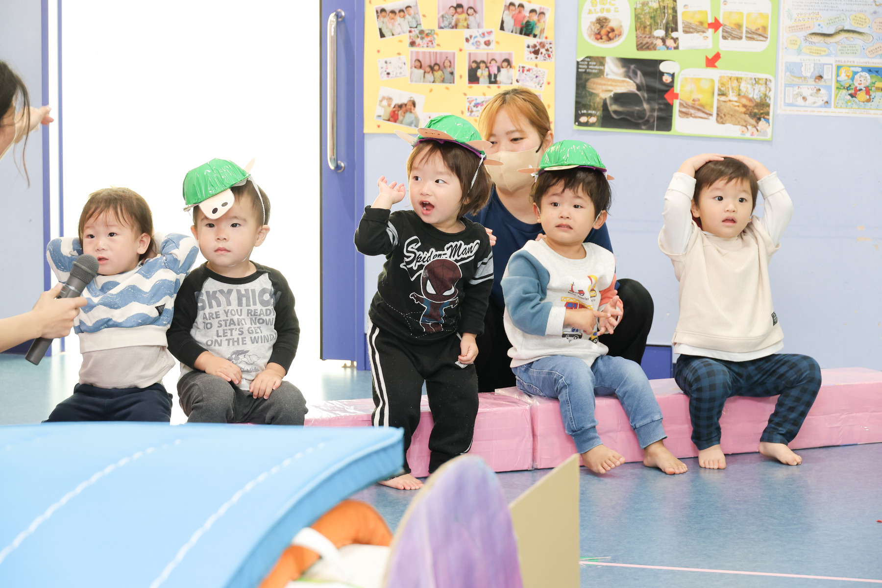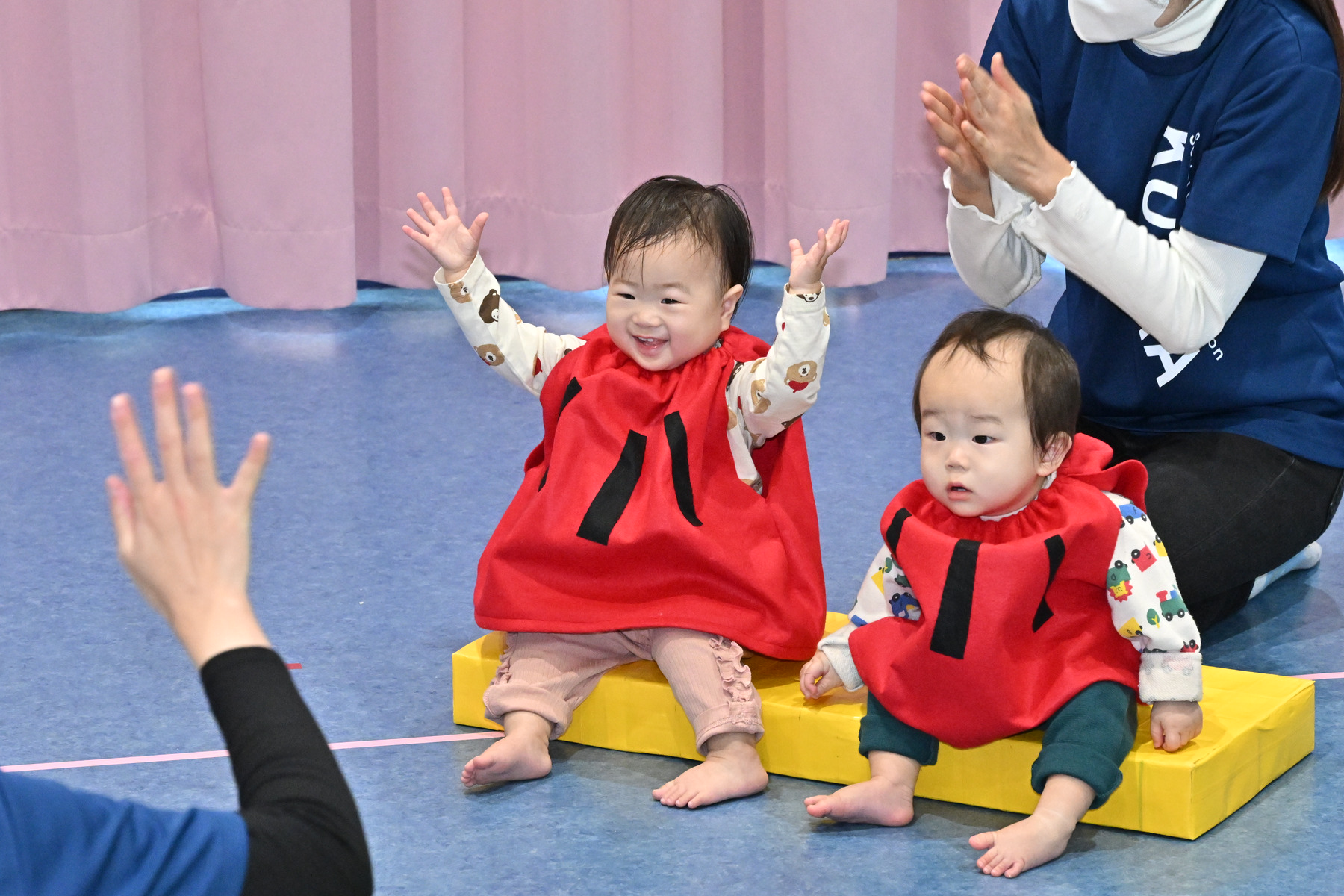 0歳児・うみチームは、普段の朝の様子を見てもらいました。上手にお返事出来るかな…。