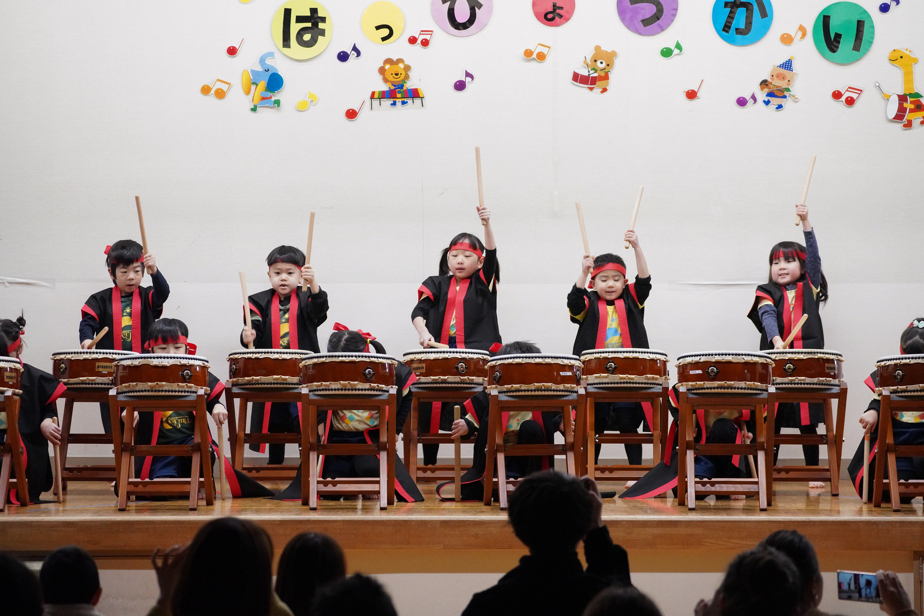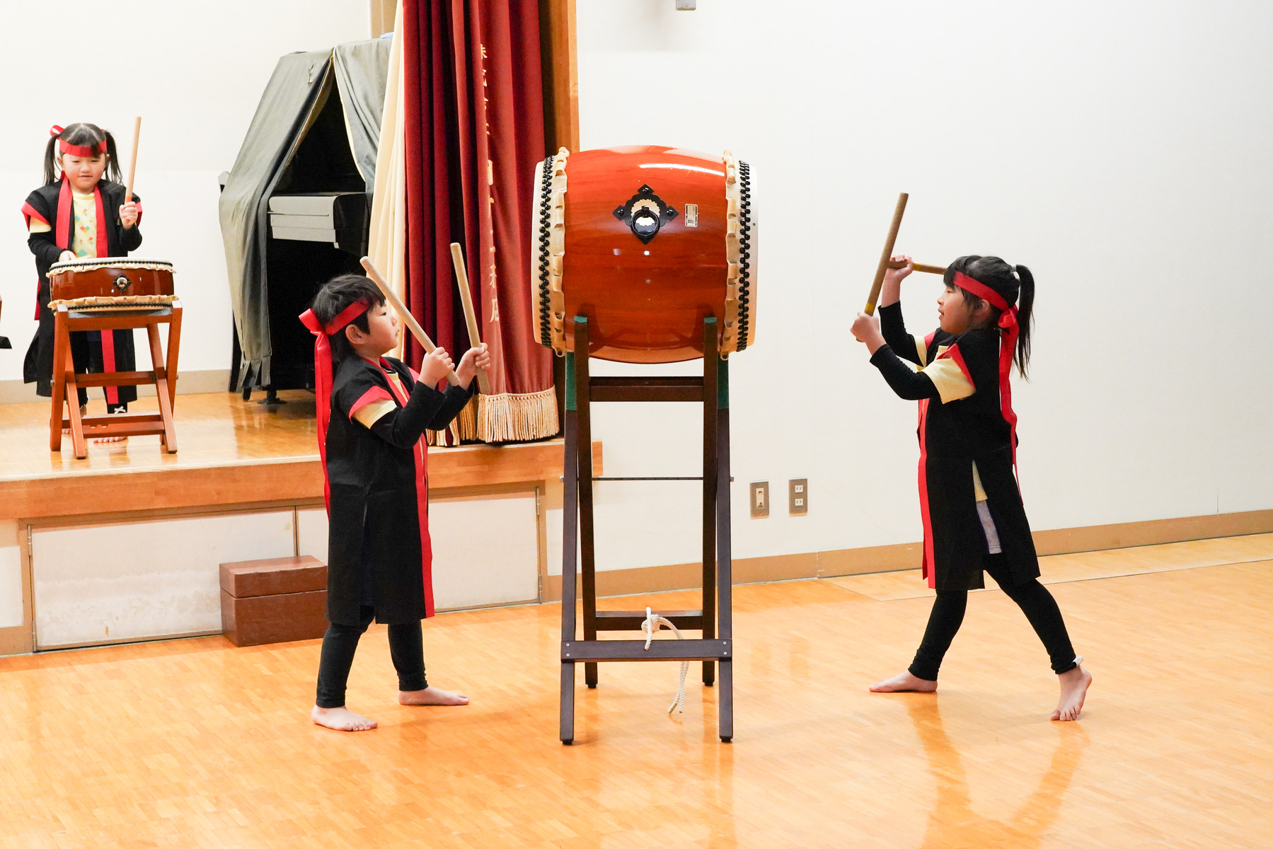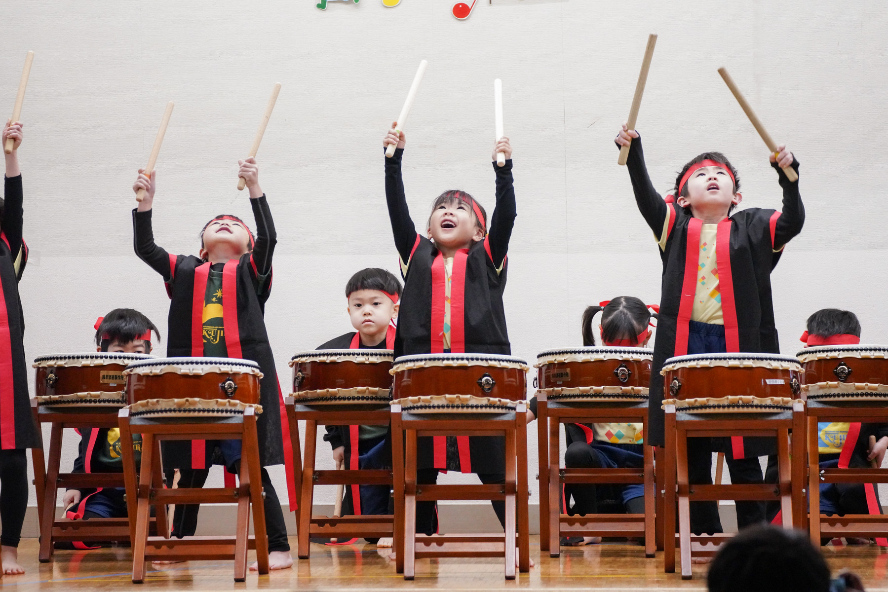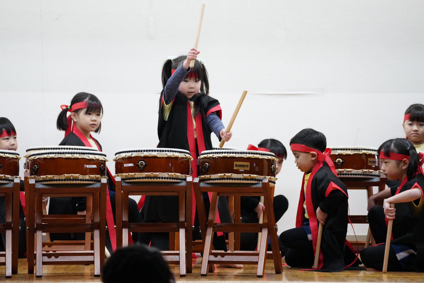 その雄姿は、早くも4歳児のお友だちに「僕たちも、くじらさんになったら日本太鼓出来るやんな」と言わせるほど、憧れの姿です。