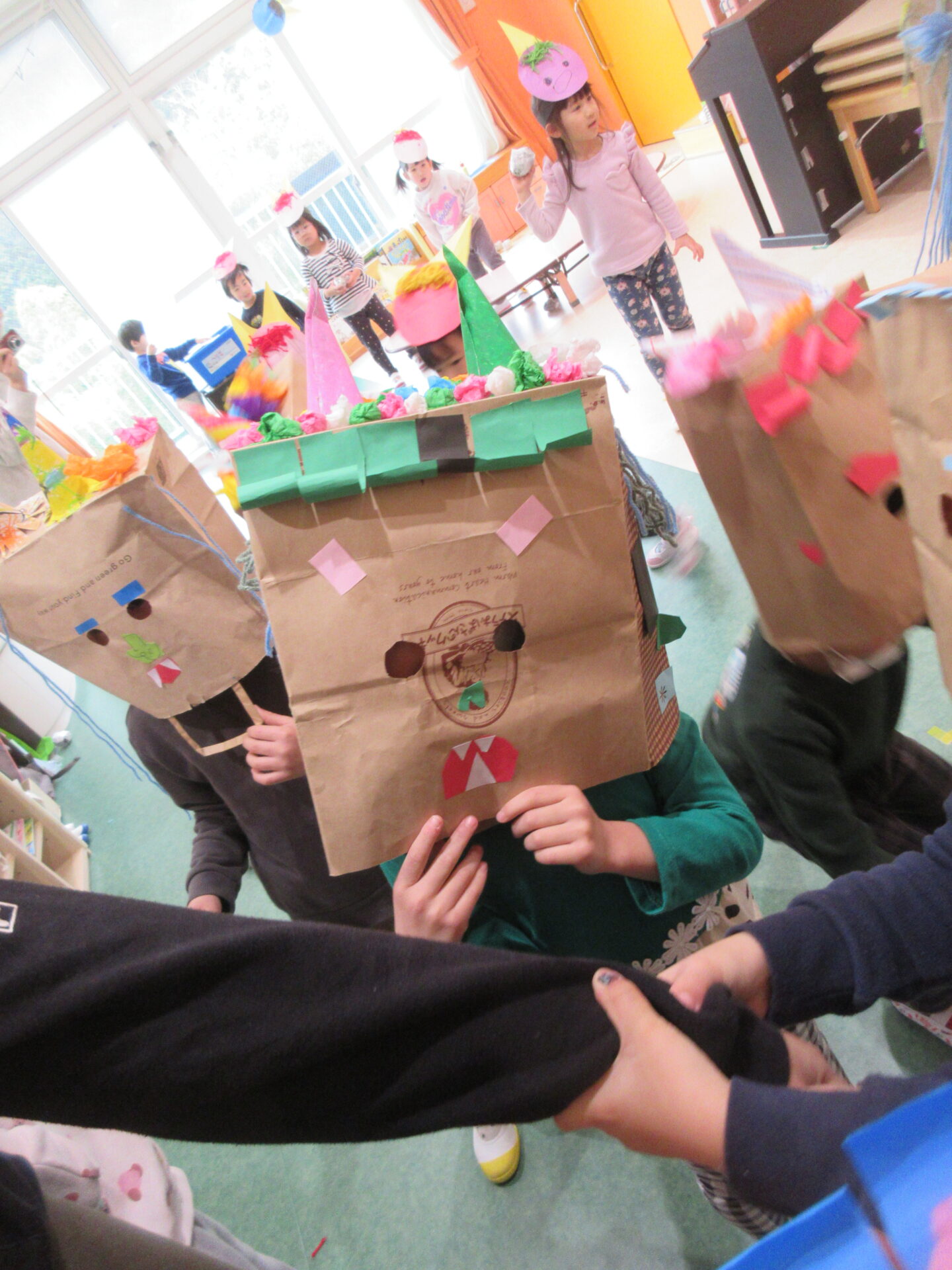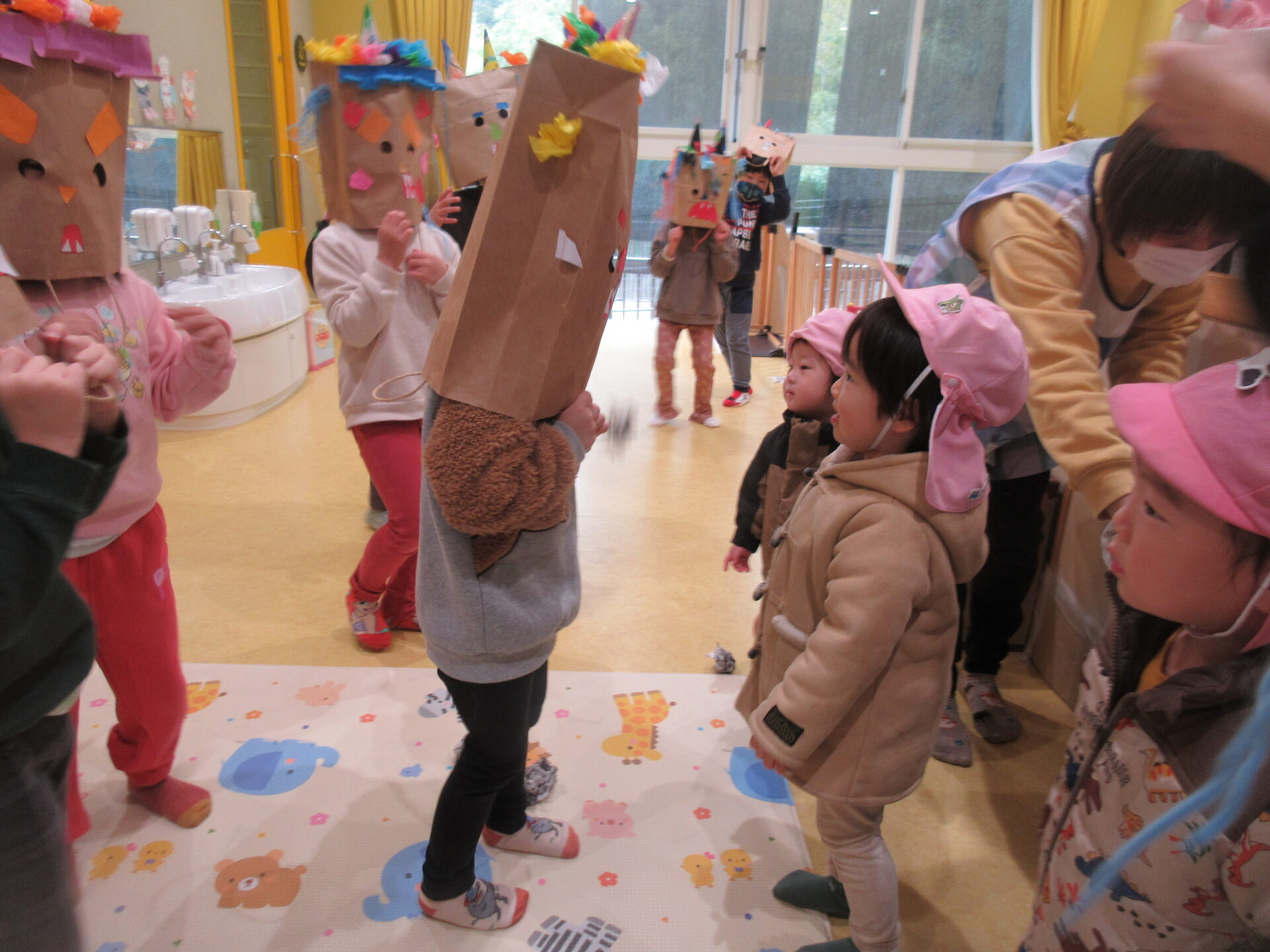 担任を連れて行かれては困ると、慌てたお友だちは必死に豆を投げ、鬼チームは「きゃー💦」と、撤退しました(笑)