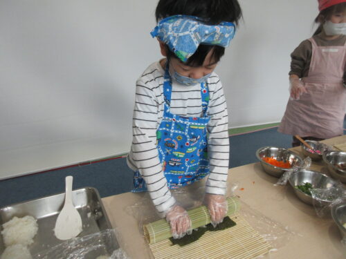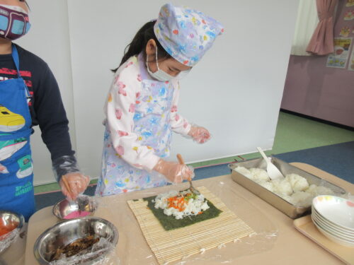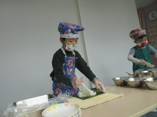 休み明けに話を聞くと「お家でもいっぱい巻いたよ!」とお手伝いを楽しんだ子どもたちもたくさんいて、「え!Dくんも巻いたん?!何個巻いた?」と話が弾んでいました。