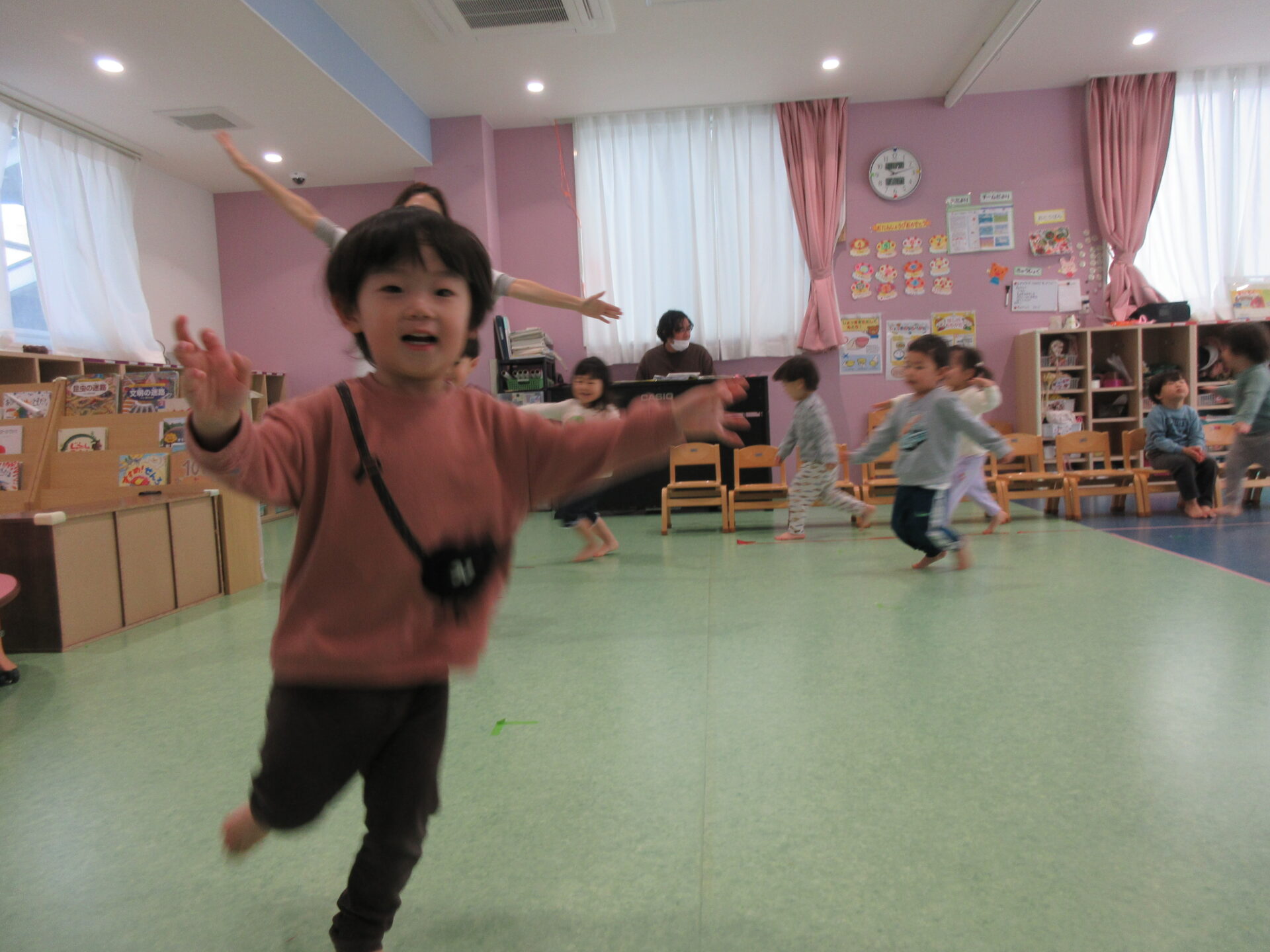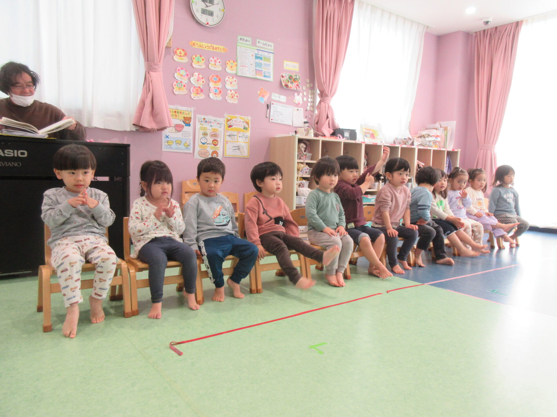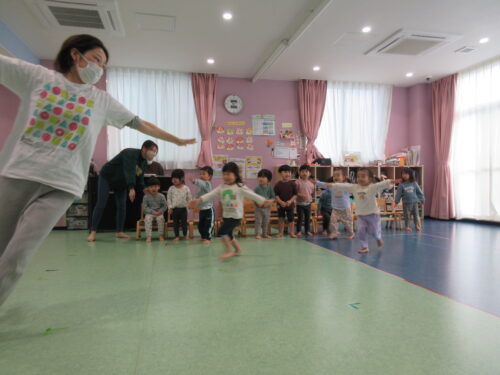まだまだリズムに慣れない子どもたちですが、とっても嬉しそうに楽しんでくれました。