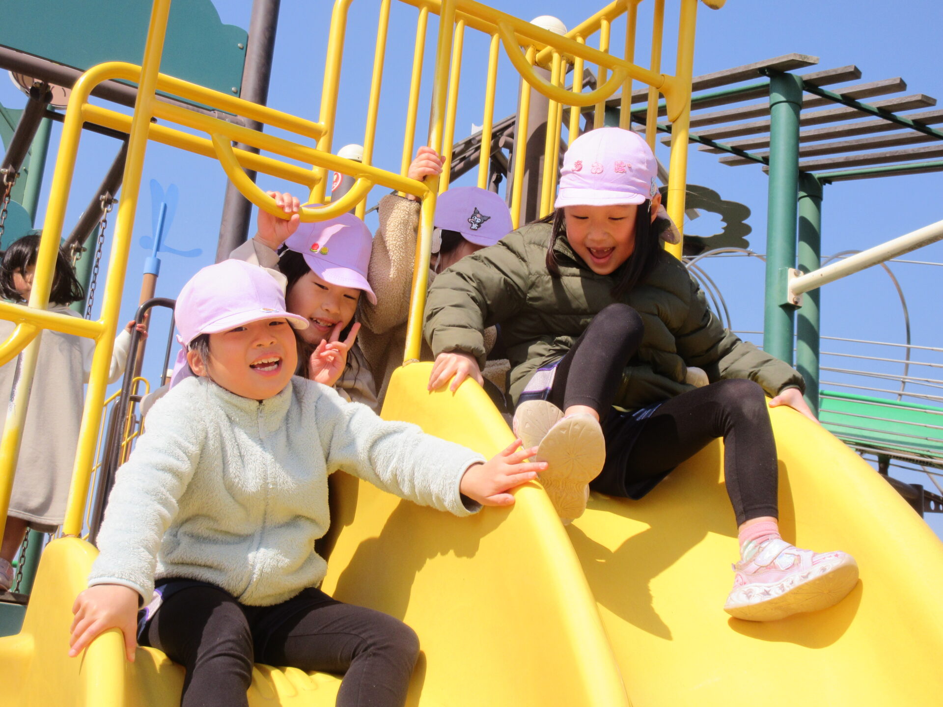 長いローラー滑り台や、バナナの形をしたすべり台、吊り橋など、普段保育園では遊べないような遊具ばかり。