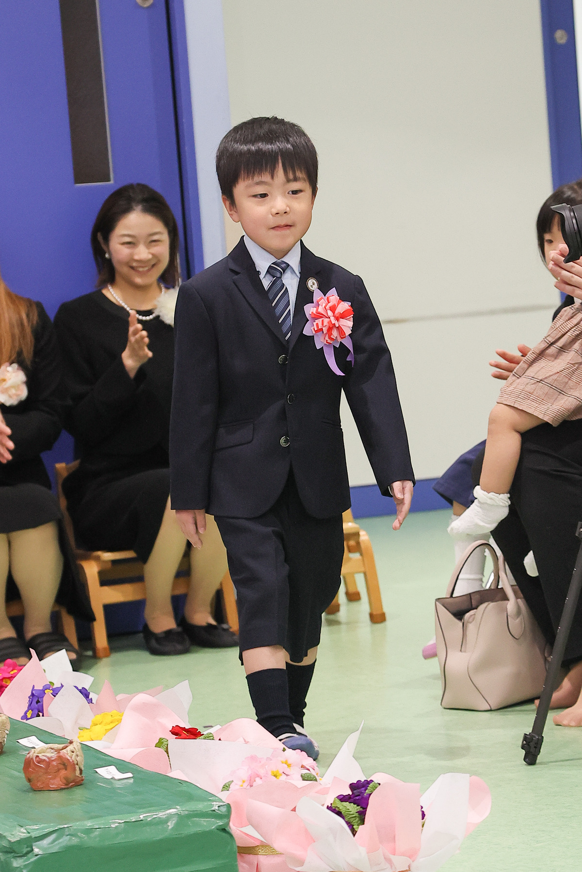 入場の音楽が聞こえると、お家の方や先生たちの温かい拍手の中、堂々とした足取りで入場です。