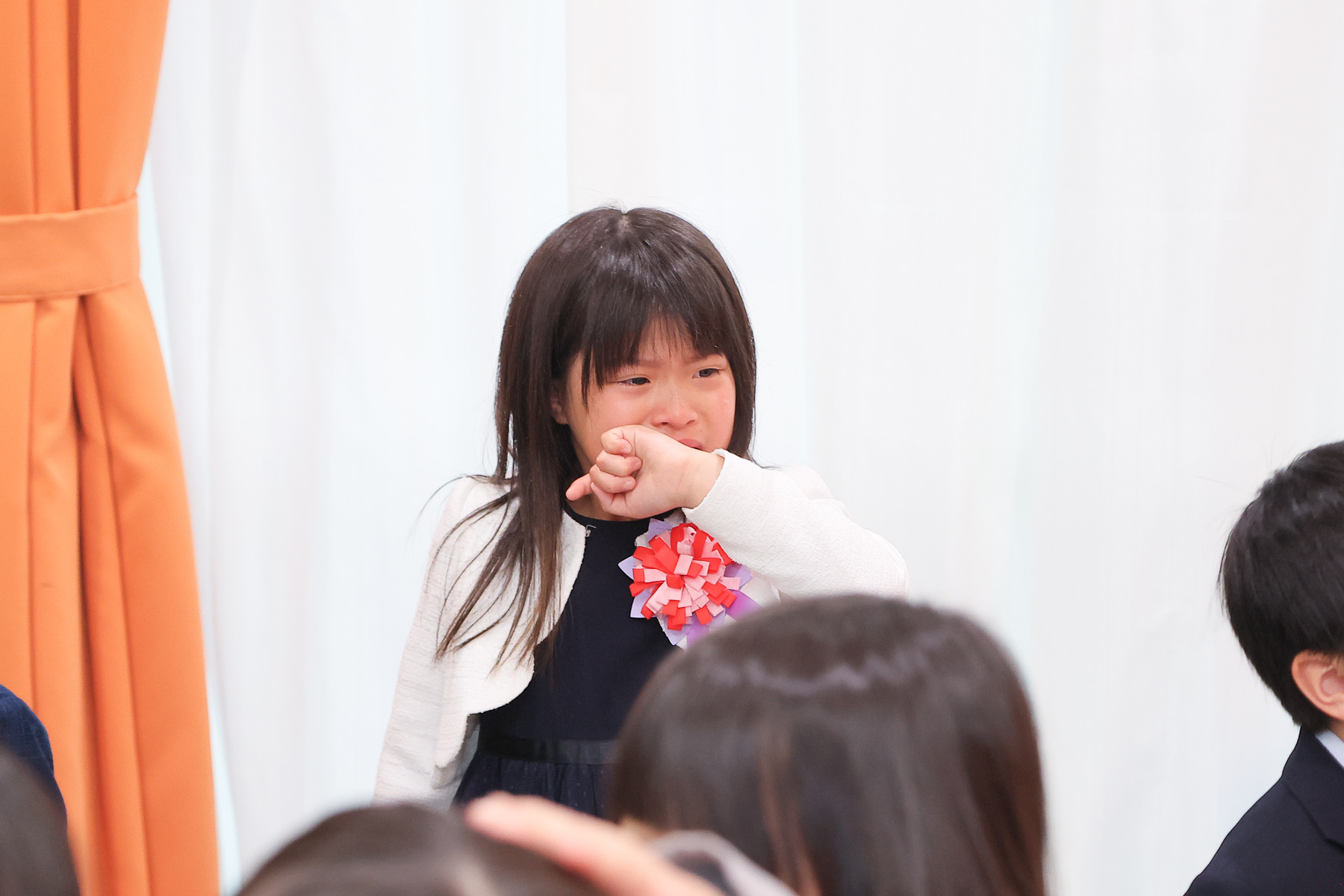 「みんなで作った、枝豆ご飯がおいしかったです!」「いちご狩りで、いちごを食べたことが楽しかったです!」など、それぞれ13名分の思い出を伝える中、鼻をすする音がかすかに聞こえ始めました。