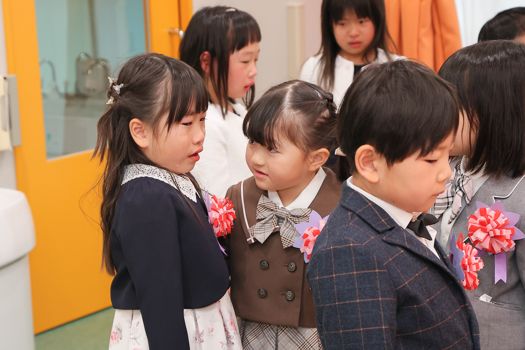 全員が揃い、「いよいよ今日が卒園式だね」と話し始めると「その話だけで泣けてきた…」と目をウルウルさせるお友だちや「めっちゃ楽しみになってきたわ!!」とワクワクするお友だち。