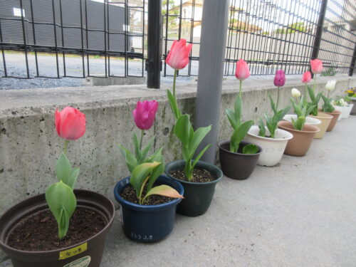 玄関では、5歳児さんの育てたチューリップが、みんなをお出迎えです。