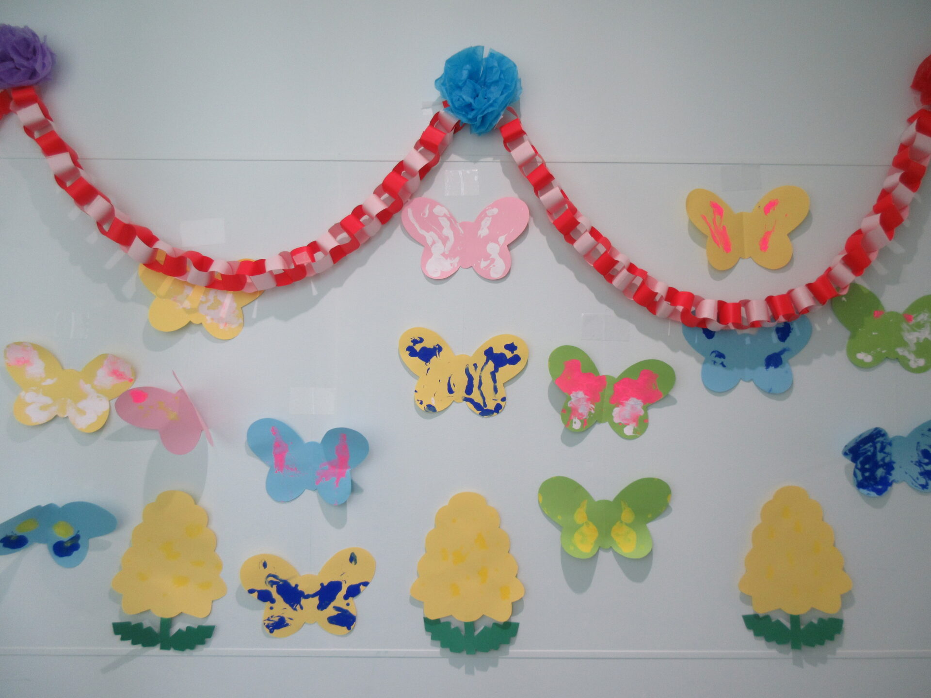壁には、在園児のみんなが作った、歓迎の壁飾りがいっぱい!