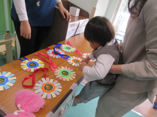 受付をすませたら、先生手作りのお祝いメダルをもらいました。