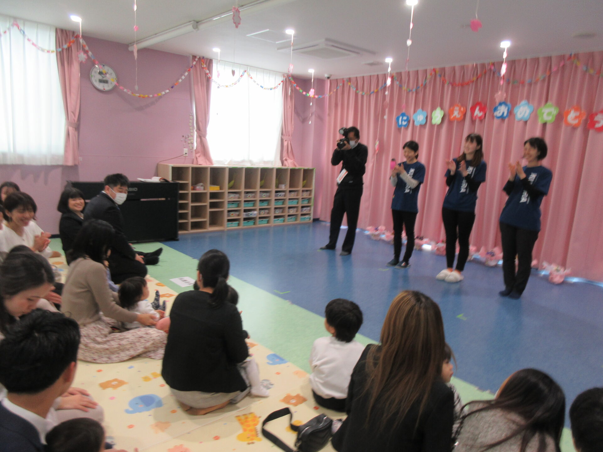 新入園児さんの、お兄さん・お姉さんも一緒に、和やかな雰囲気の中、入園式のスタートです。