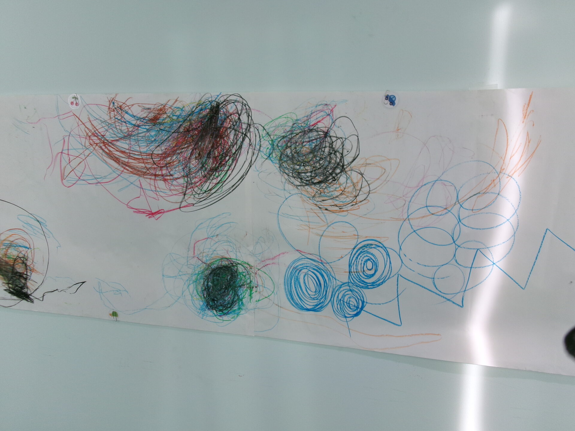 最後の方には「もっともっと!」と、場所を移動して白いところを探しては、たくさん描いてくれました。