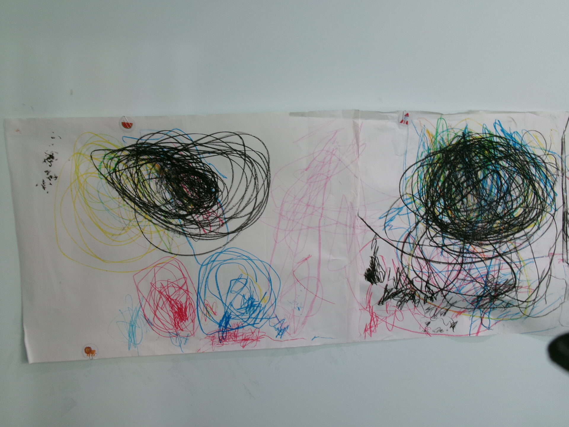 ひとりが描き始めると、他のお友だちも真似をしてグルグル~(*^-^*)