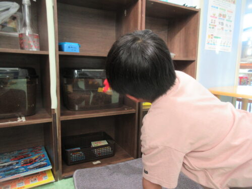 そら・くじらチーム(4・5歳児)のお部屋を入ってすぐ、お日様の光が当たらない棚の中に大きな飼育ケースがあります。 その中身は、カブトムシの幼虫! 実はこの幼虫、昨年度の卒園児さんが夏から飼っていたカブトムシが卵を産んで … 続きを読む おとなになれますように【4歳児 そらチーム】