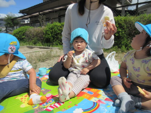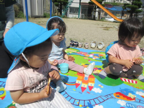お外で食べるおやつは格別だったようで、いつも以上にパクパク食べていました😊