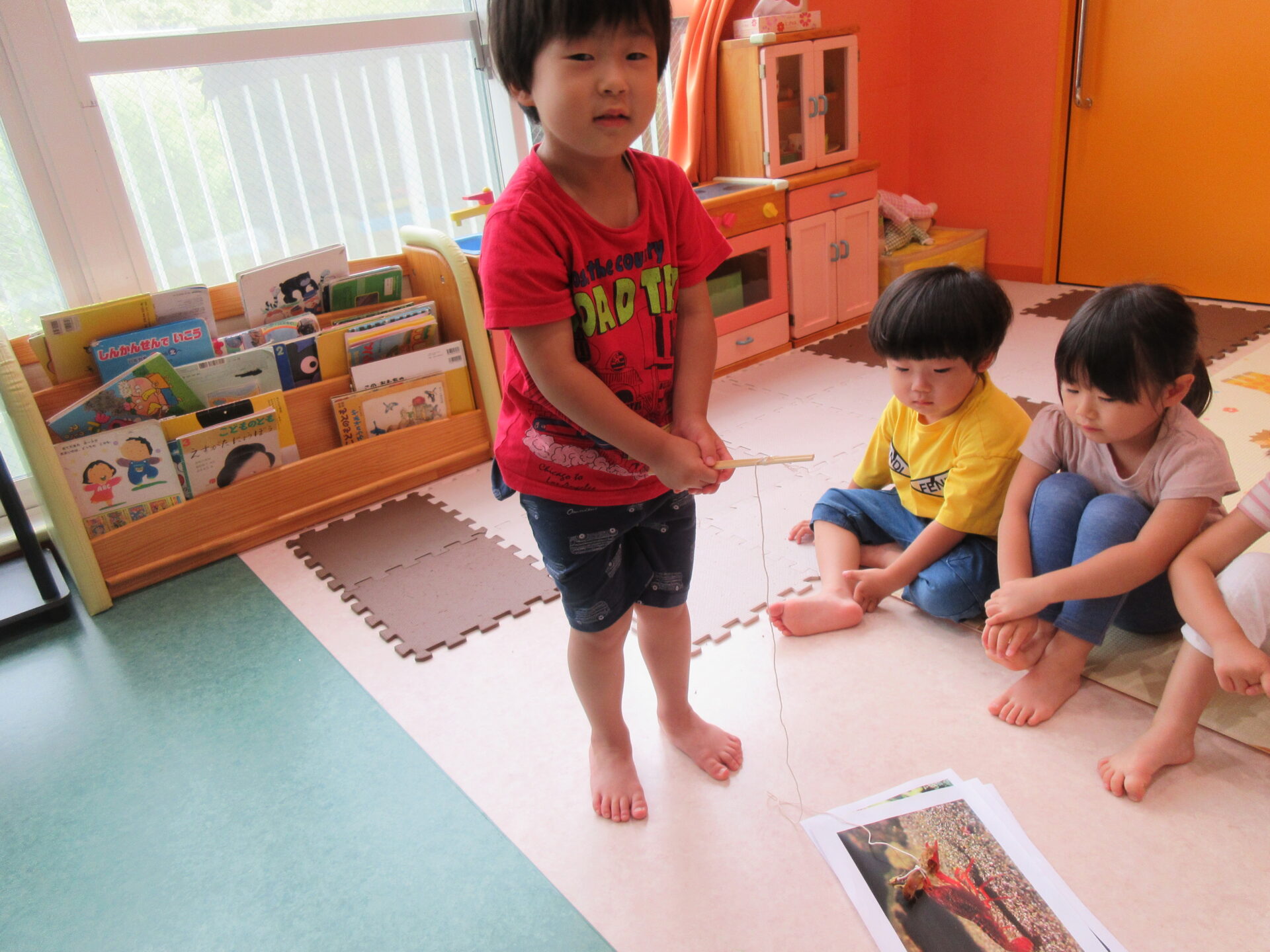 ザリガニの写真と釣り竿を使い、釣り上げるシュミレーションもばっちり😊