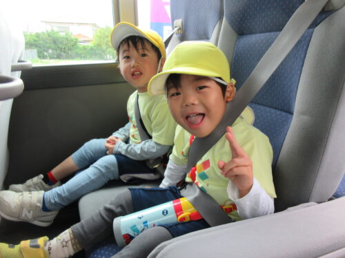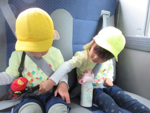 「シートベルトちゃんとしめた?」「大きな声は出さないよ」と、バスのお約束もしっかり伝わっていました。