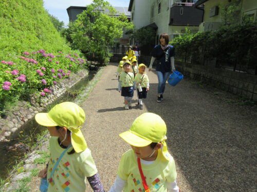 その裏の遊歩道にある池まで、初めてのザリガニ釣りに行って来ました。