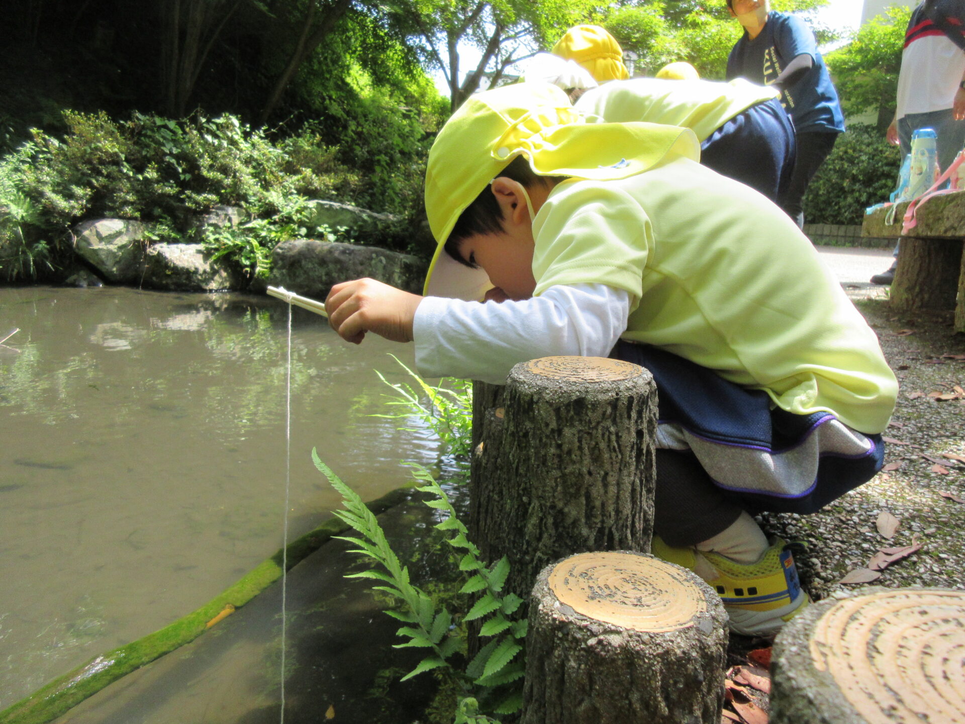 着いた瞬間「どこにいる?」と、水の中を覗き込んで探す子どもたち。