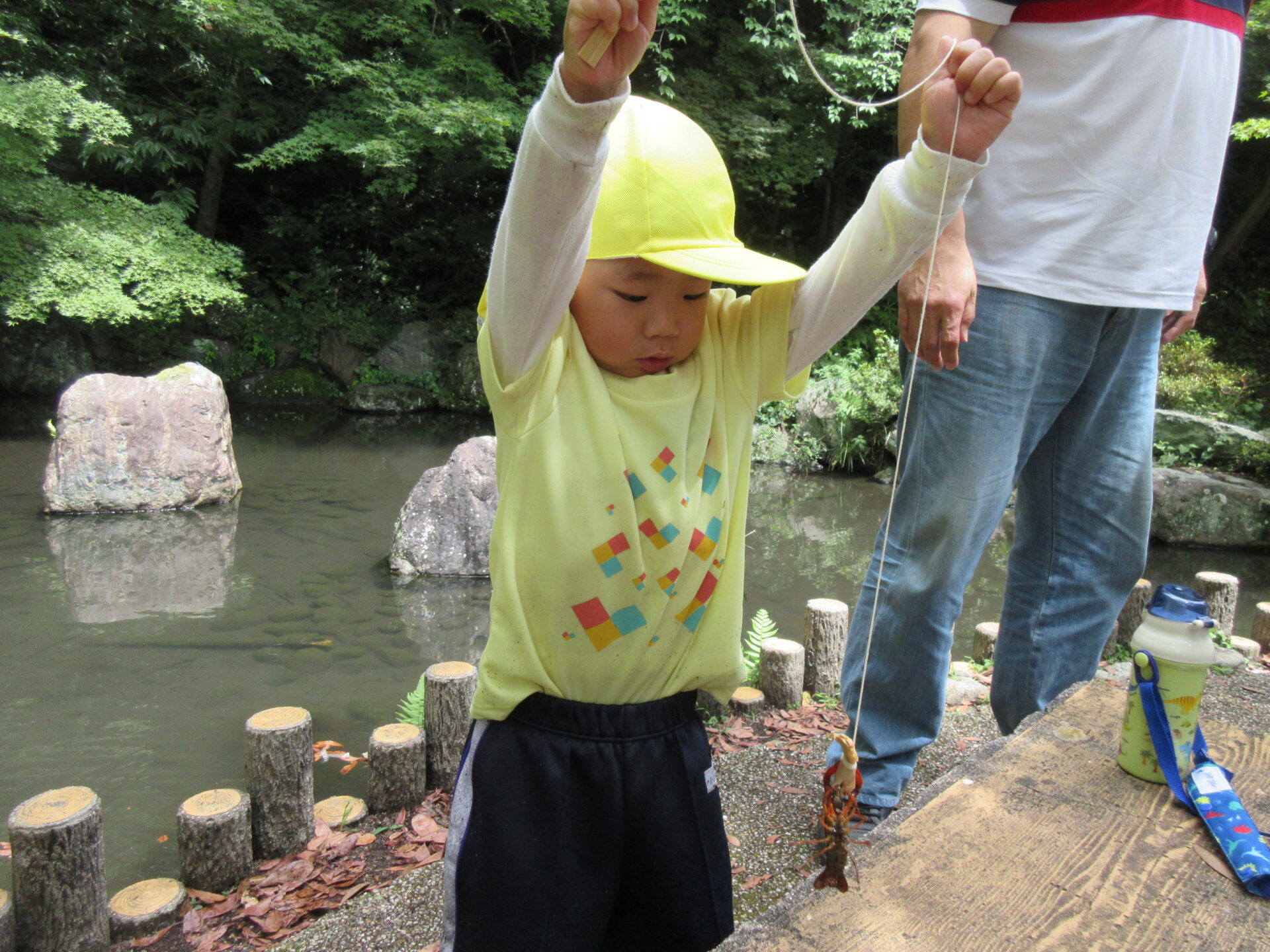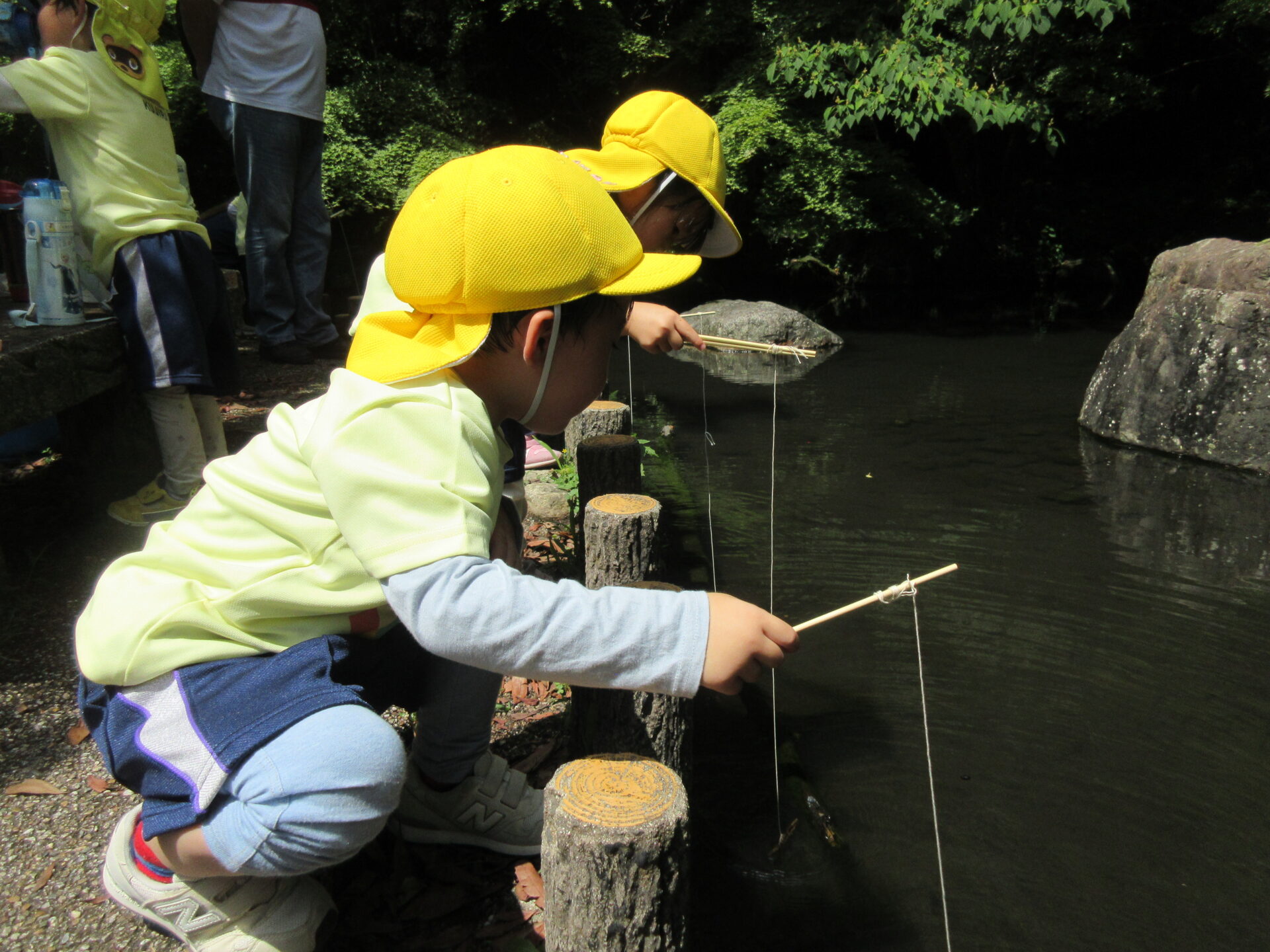 釣り竿をひとつずつ持って、ザリガニ釣りスタート!