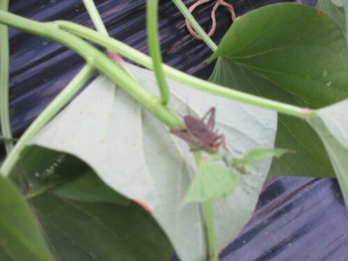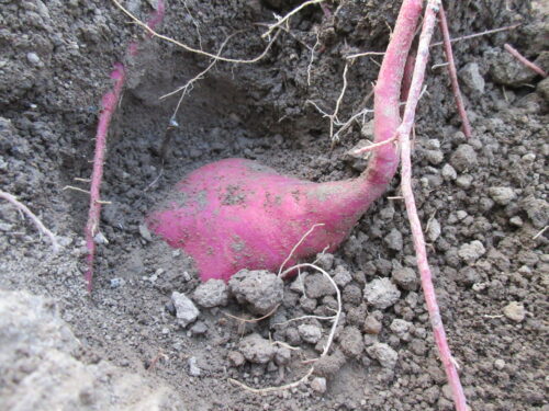 これをしておかないと、地中に小さな芋ができて余分な養分を使用してしまうため、お芋が大きく育たないそうです。