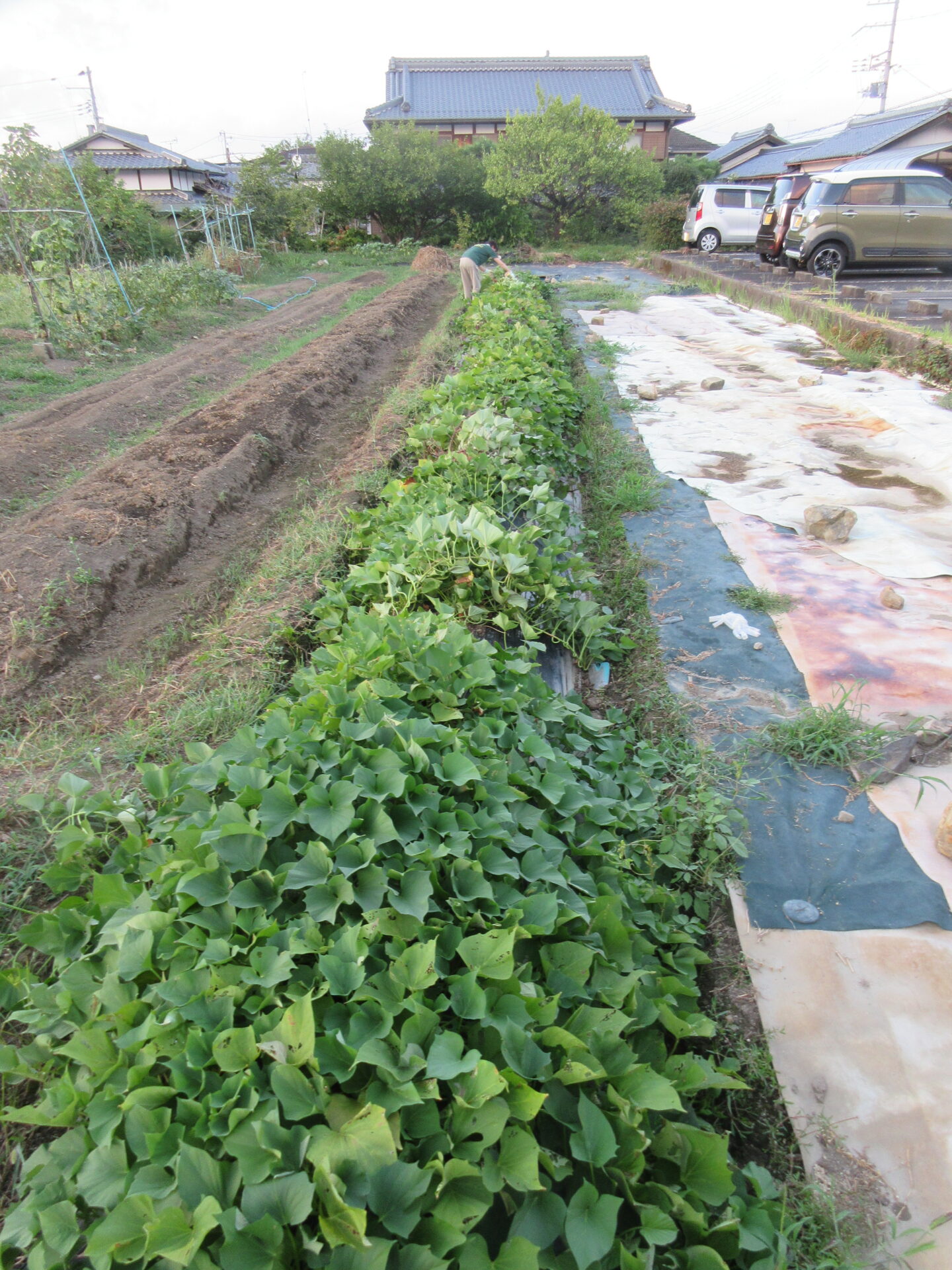 春のブログでもお知らせしましたように、今年度は地域の畑をお借りして、5月にさつま芋の苗植えをしました。