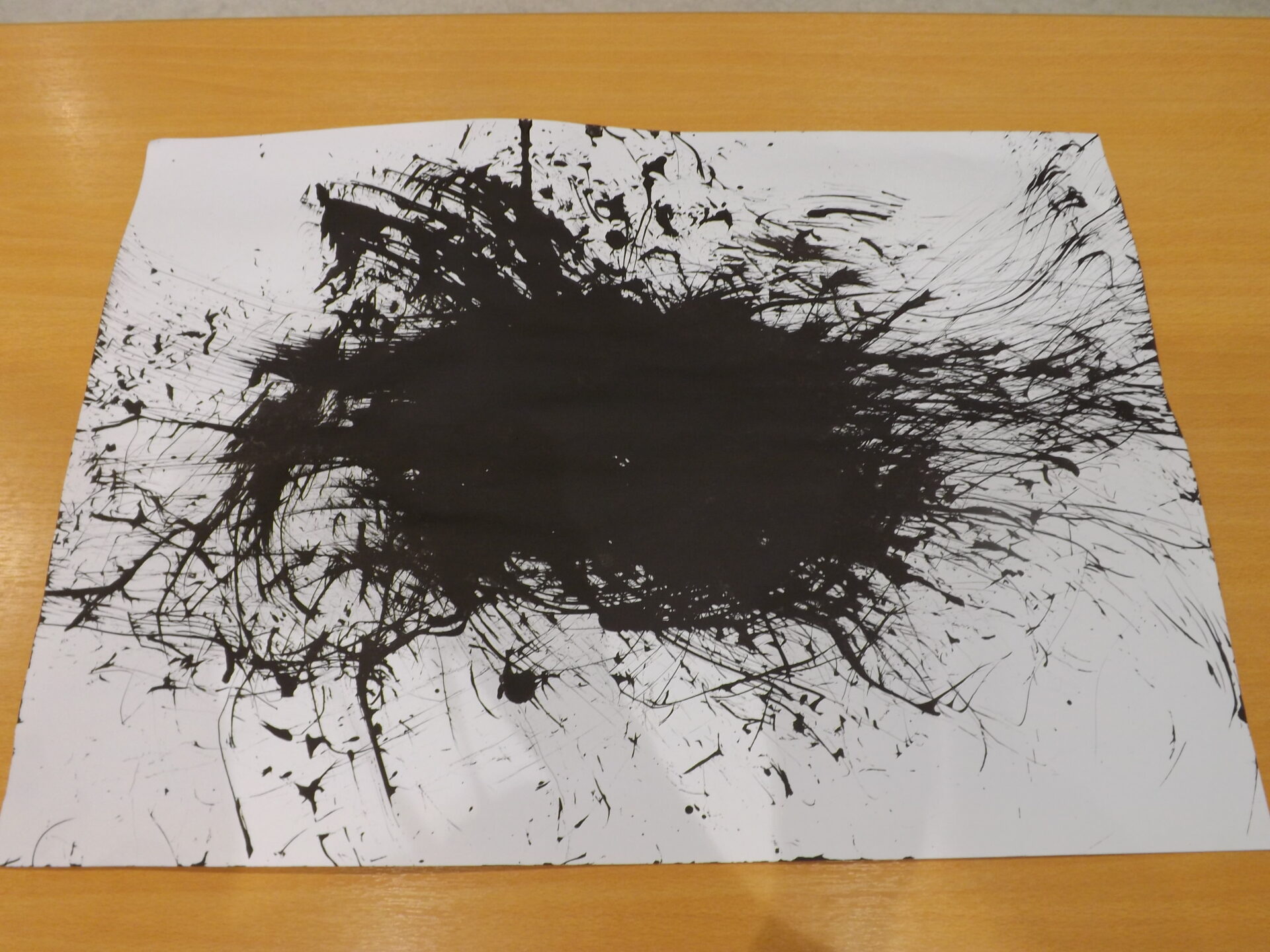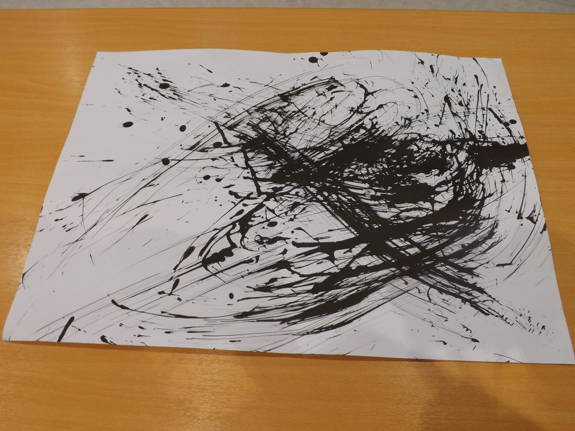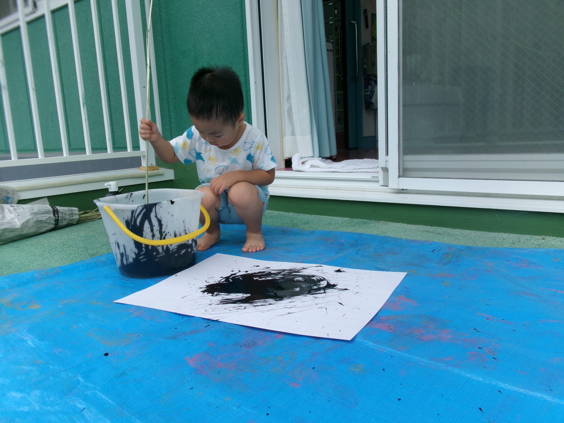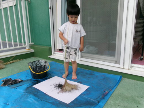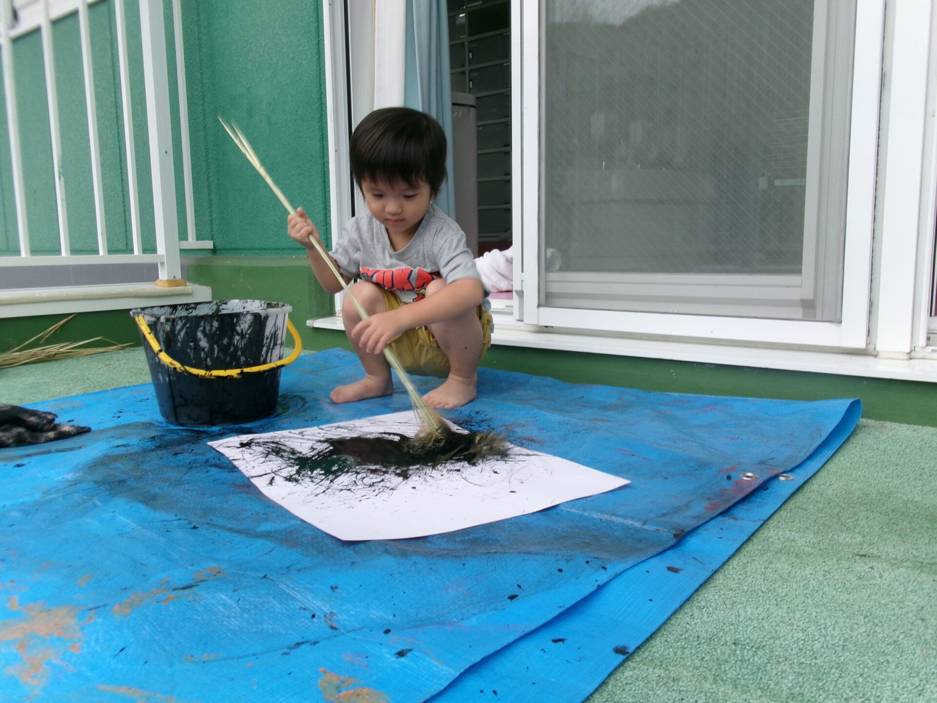 墨汁をつけると、真っ白い画用紙にドキドキしながらも、ダイナミックに『えい!!』