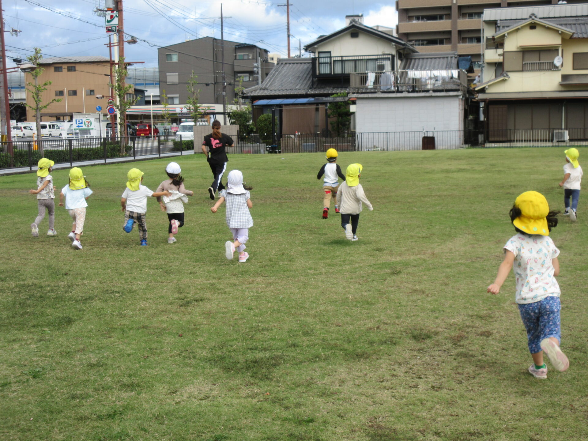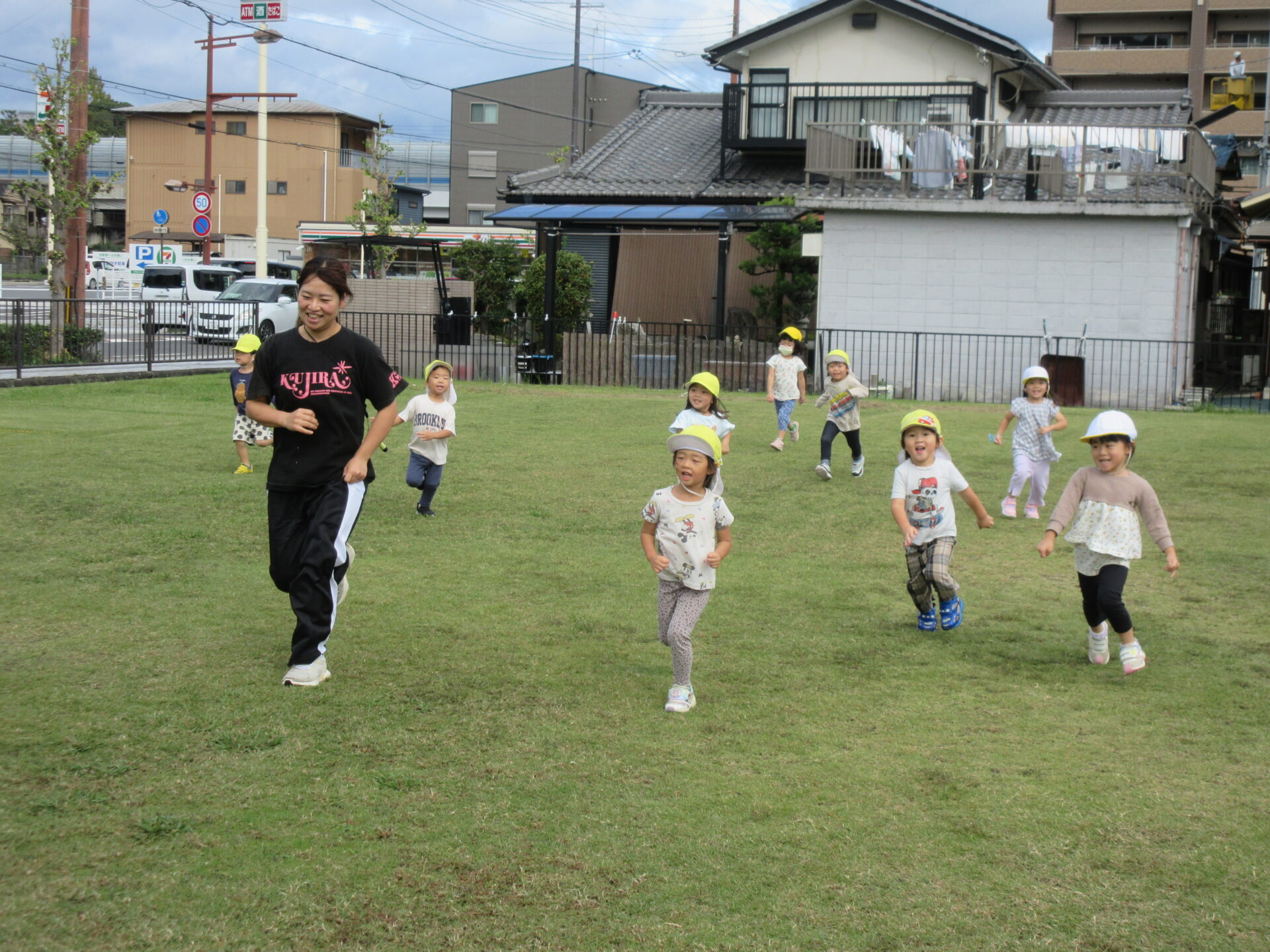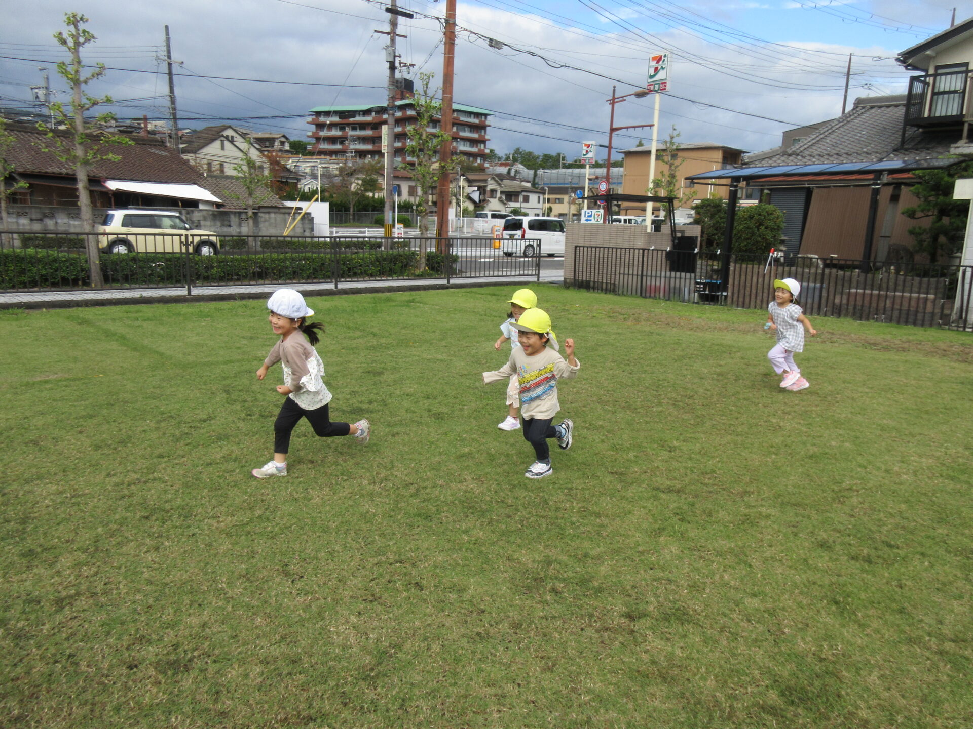公園に到着すると早速、“よーいどん”かけっこをしました。