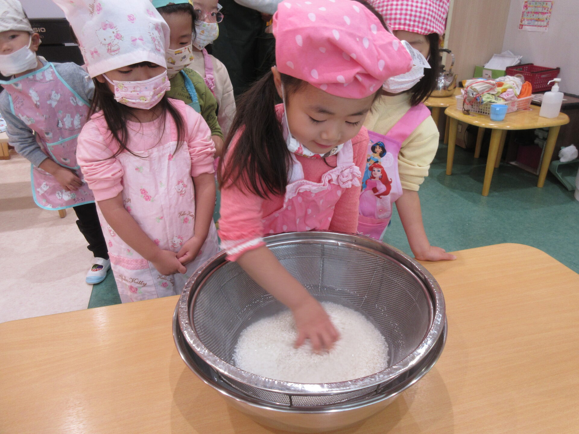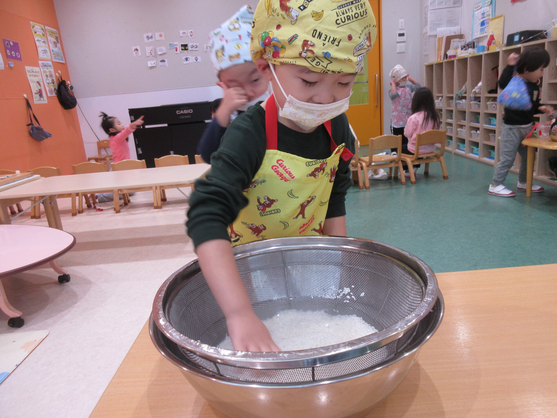 「あっ、お米!」「お母さんがいつもお水で洗ってる!」と、何をするのか伝える前に教えてくれました。日頃から、お母さんやお父さんがしてくれていることをよく見ているんですね☻