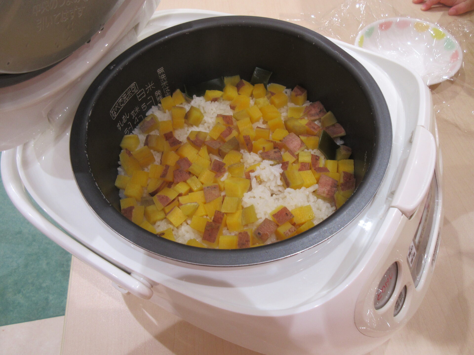自分たちで大切に育てたさつま芋を入れ、ご飯を炊いておにぎりにします。