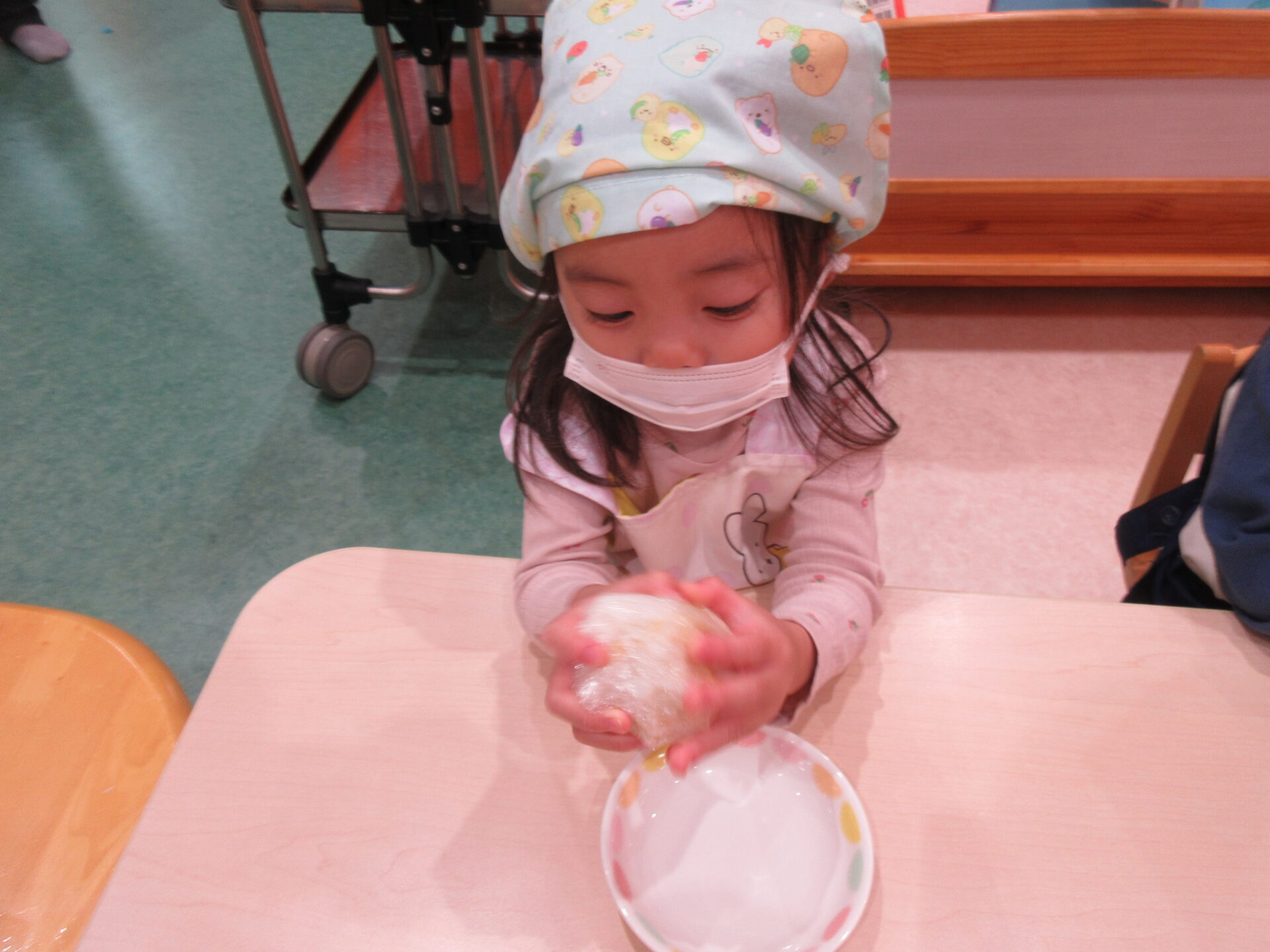 そして、一人ずつラップを敷いたお皿に盛り、おにぎり作り🍙
