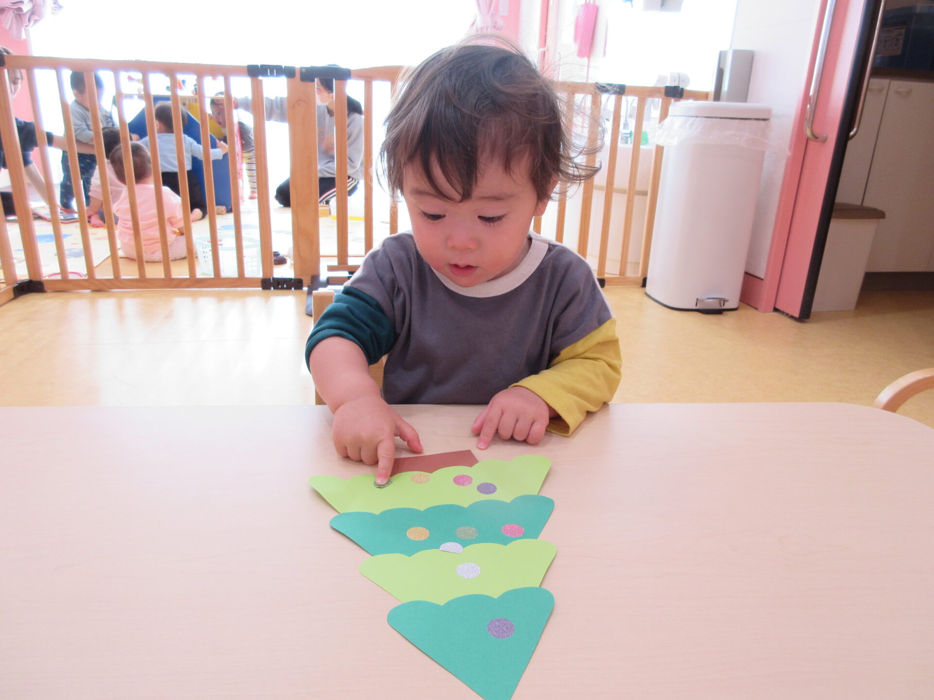 早速壁面を貼り替えると「ん!」と、気付いてくれるお友だちも(^^♪