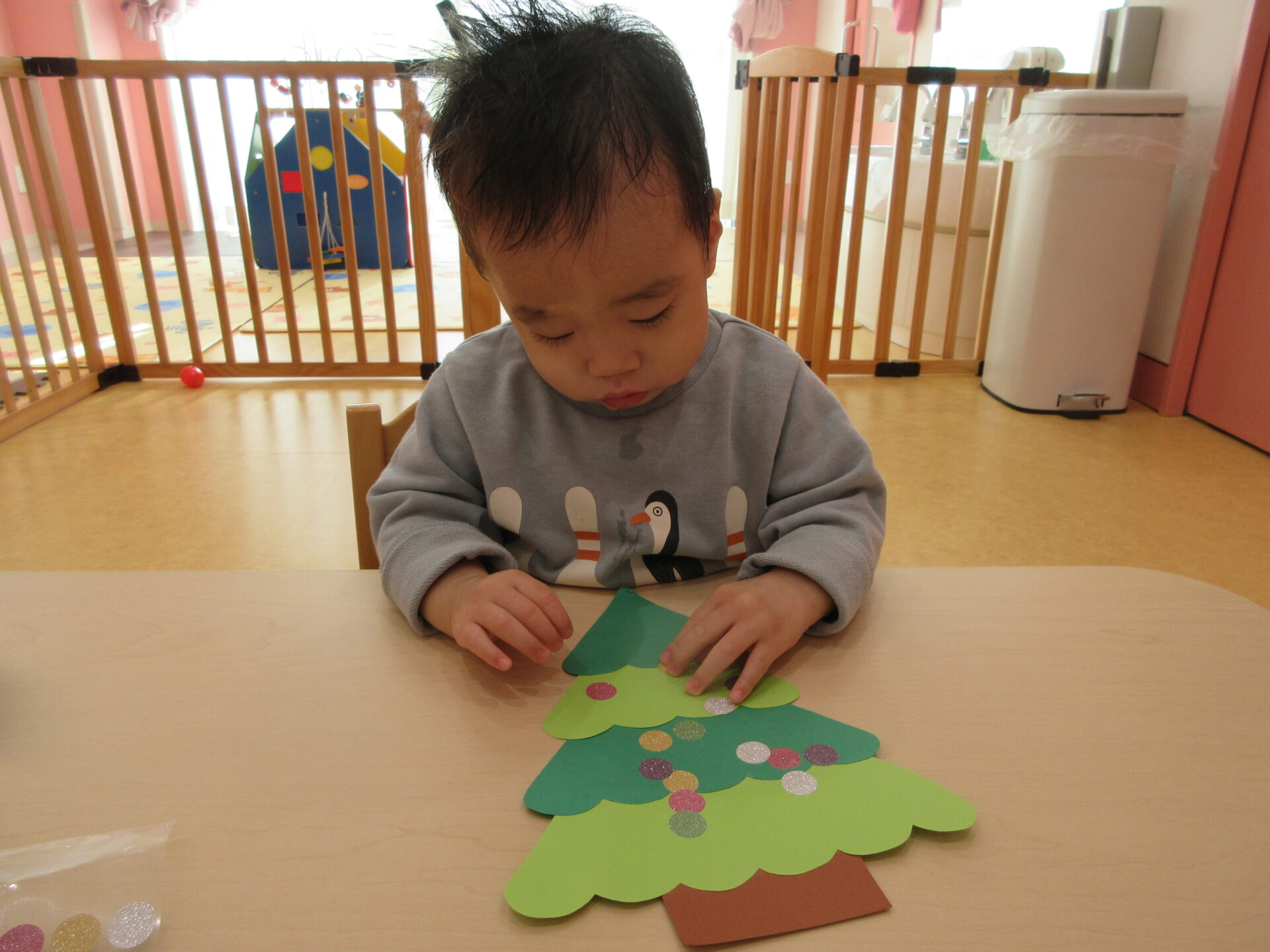 そしてもうひとつ、初めての…ですが、今月はシール貼りにも挑戦してみました。