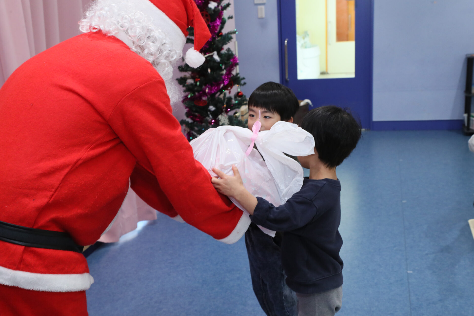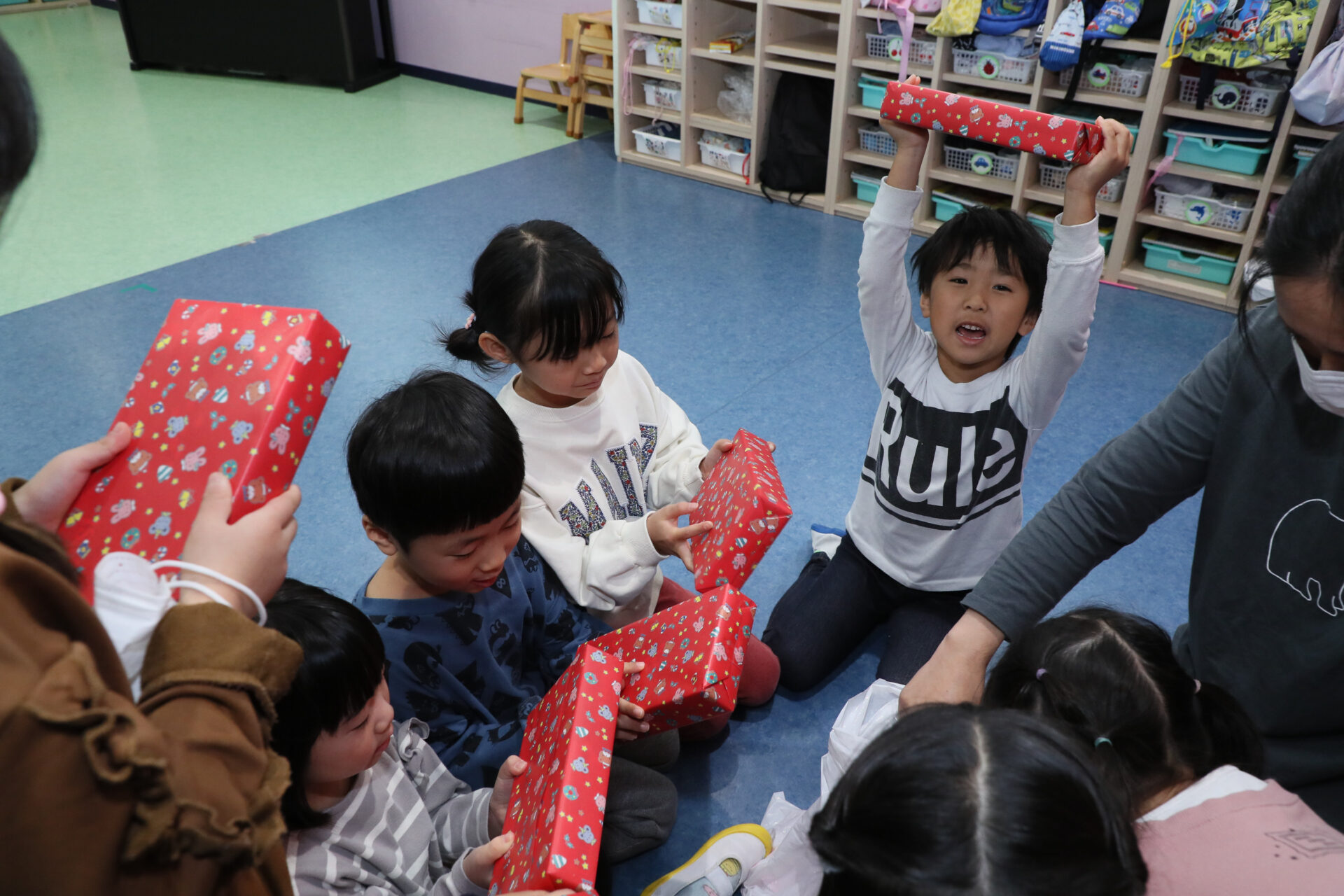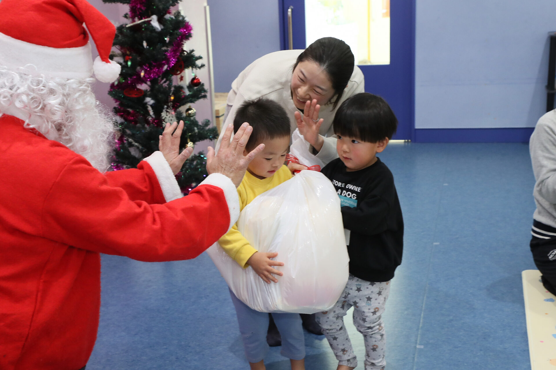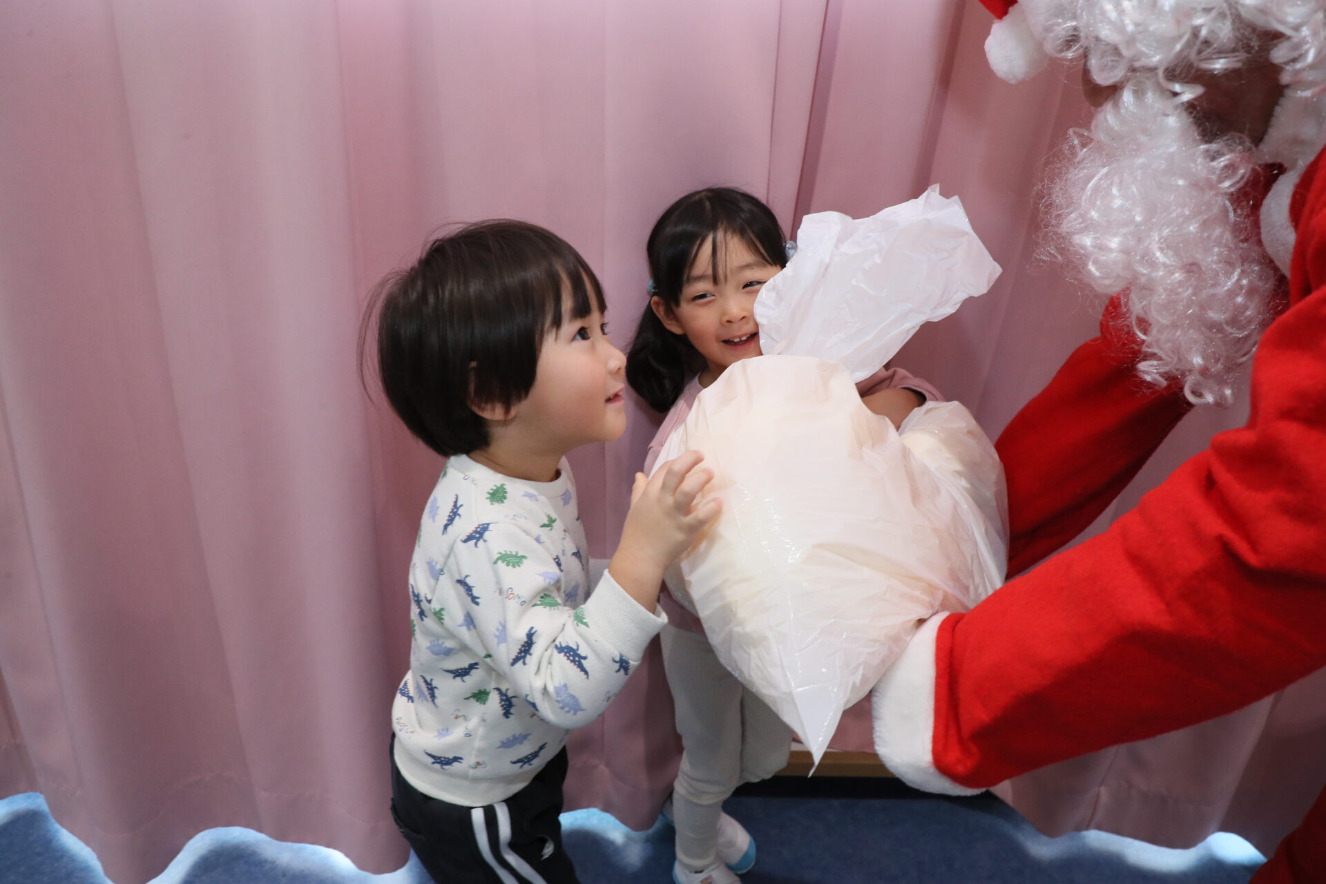 サンタさんから、クラスごとに手渡してもらいました。