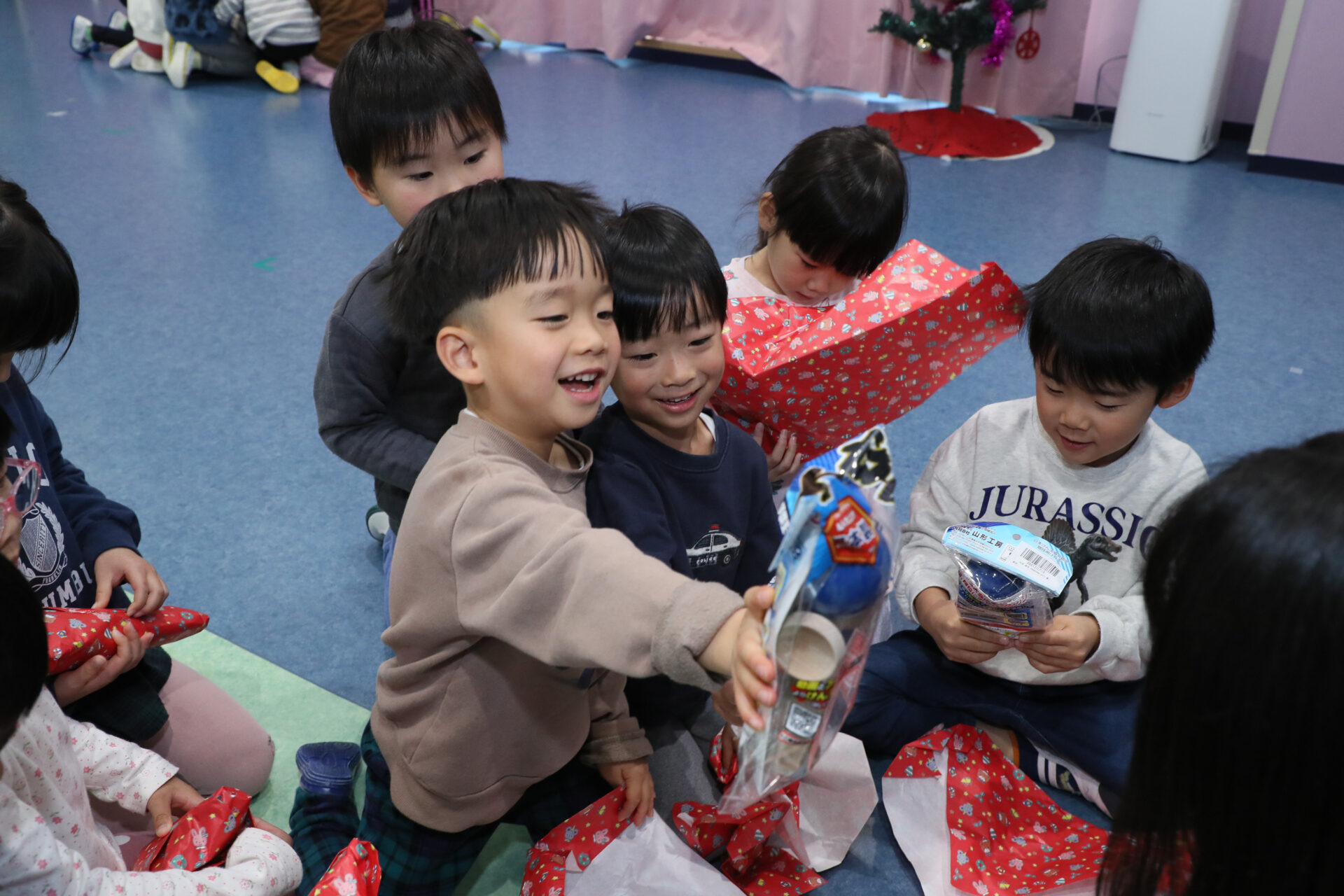 サンタさんが帰った後に、早速プレゼントをあけて大喜びのお友だちでした😊