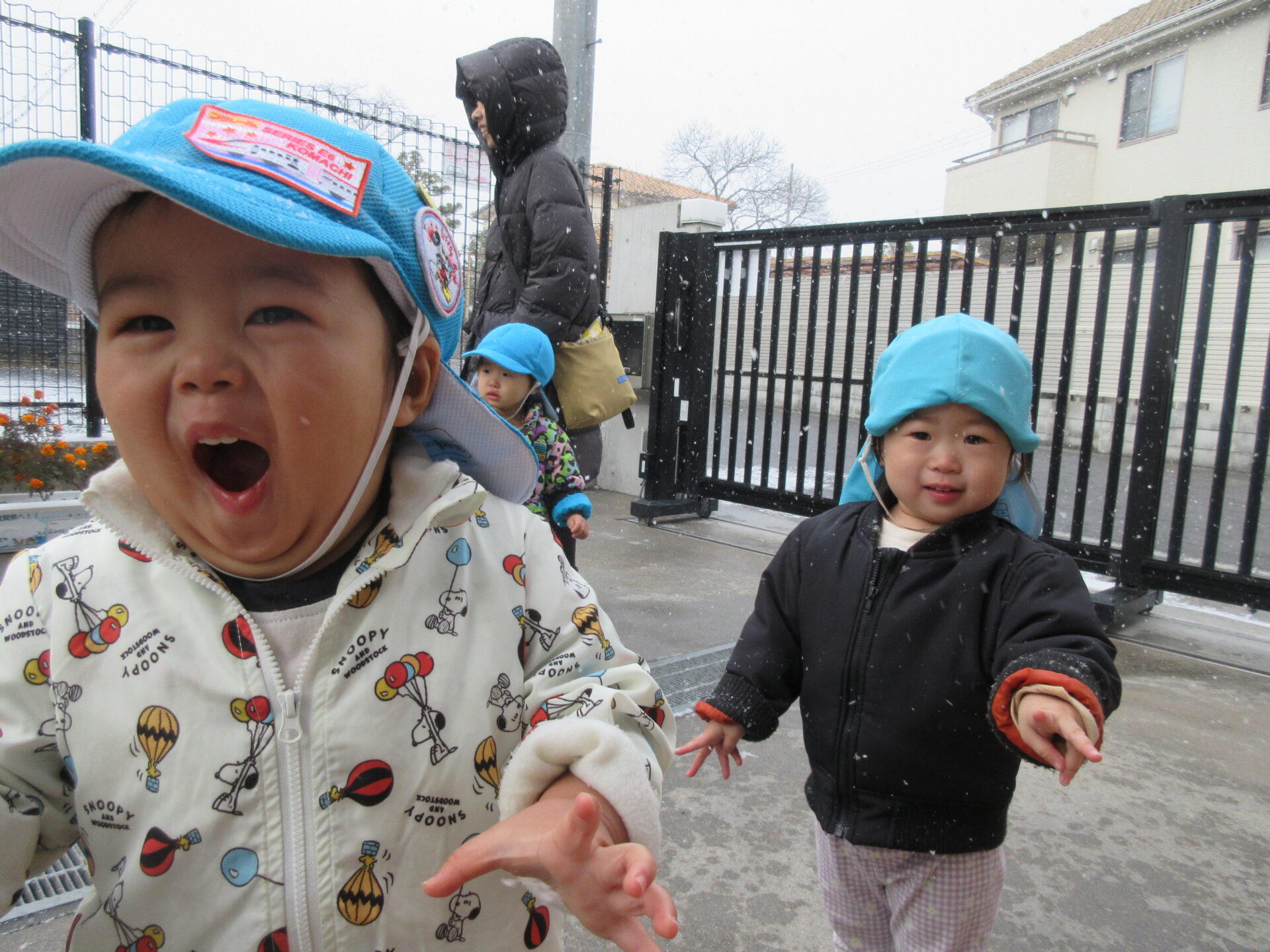寒くて手がかじかんだり、冷たい雪が顔に当たったりして、自然にポロリと涙が出てしまうお友だちもいましたが、たくさんの雪に目がキラキラしていました✨