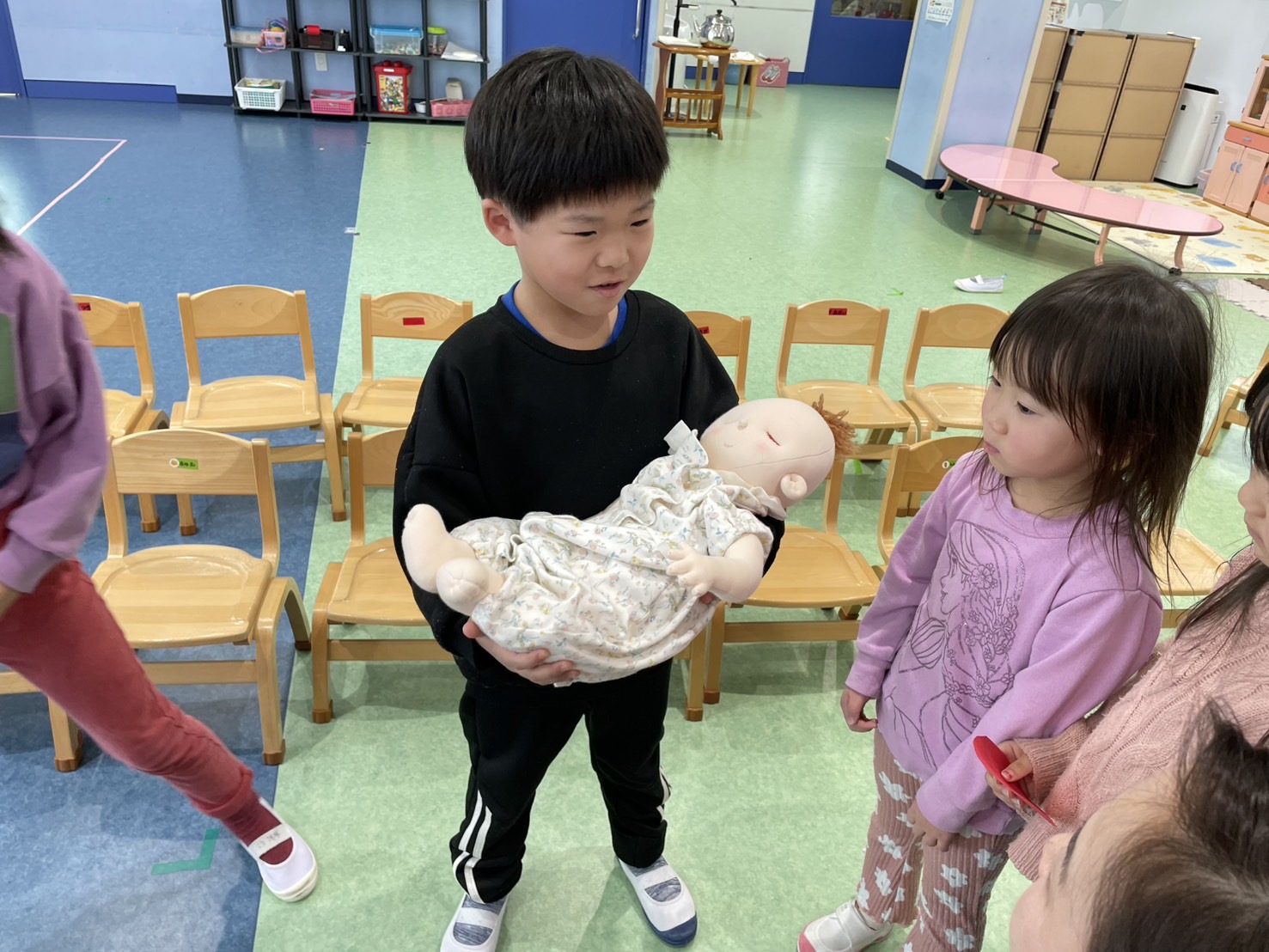 「重た💦」「全然重たくない」反応はそれぞれでしたが、とても嬉しそうな、小さなお父さん、お母さんたちでした。