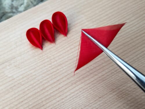 つまみ細工の作り方ですが、布地は絹が使われることが多いようです。