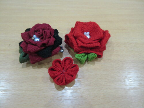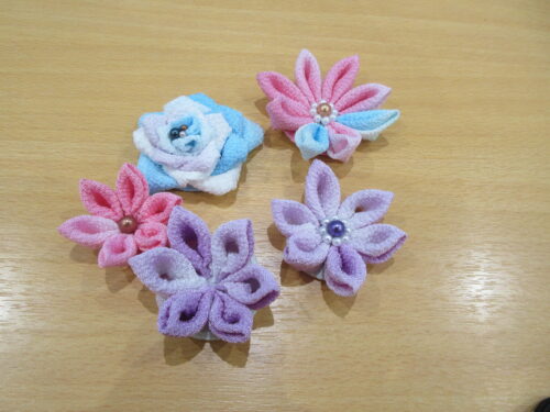 先日の事、A先生と雑談をしていた時に、ふと趣味の話になり「つまみ細工を作っているんですよ」「えっ?実は私も!」と意気投合。