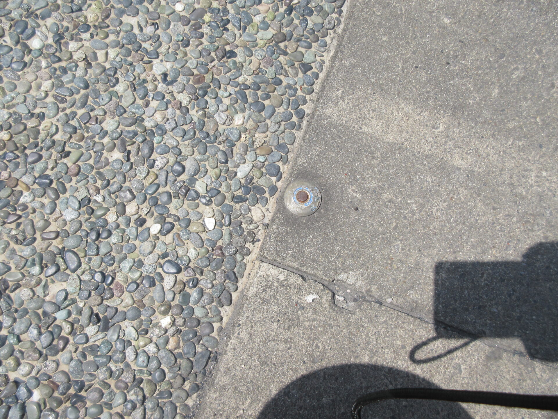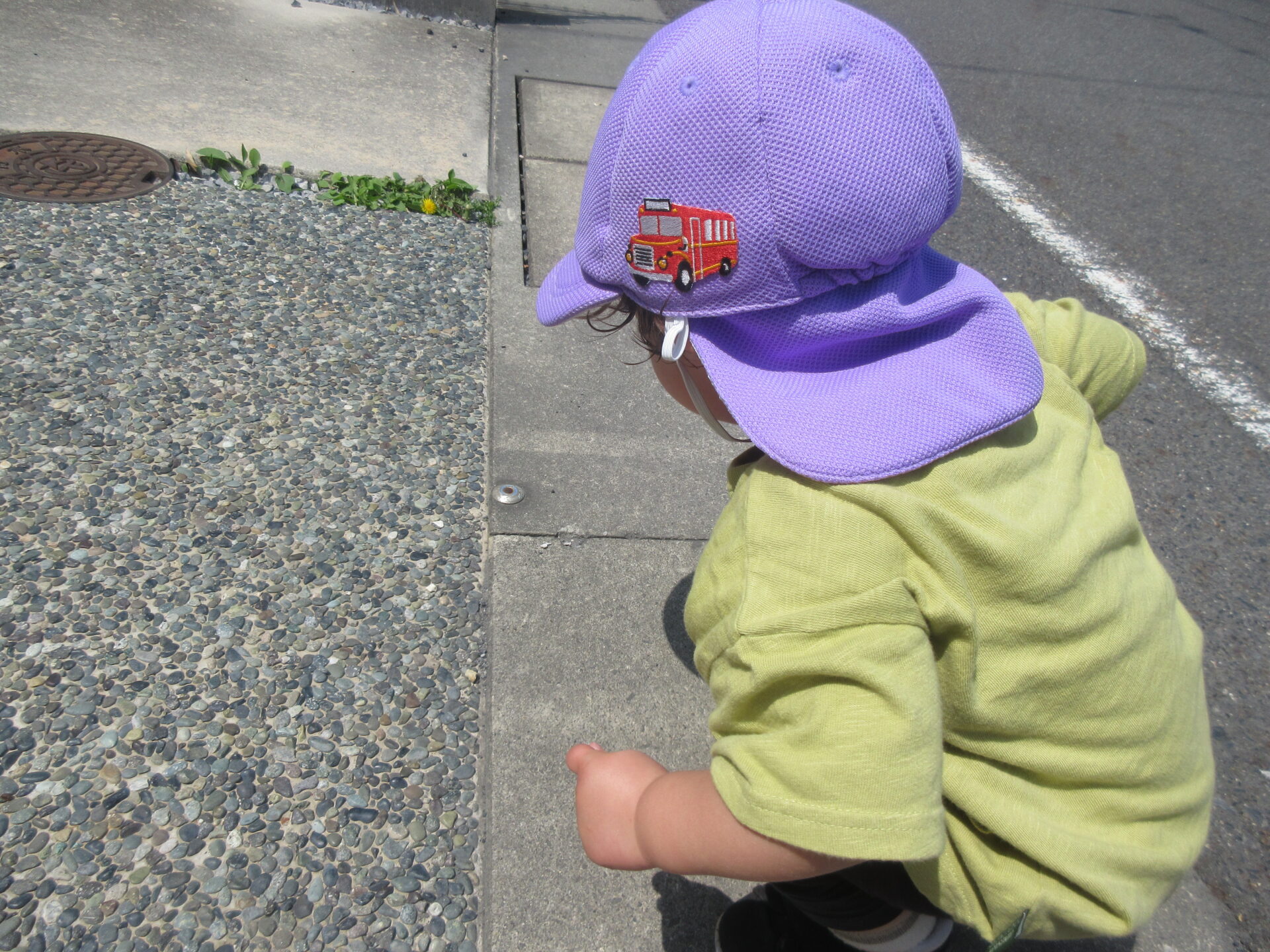 バギーから降りた後の今1番のブームは、道路の丸い銀色のものを「ピーンポーン」と1つずつ押していくことです(笑)