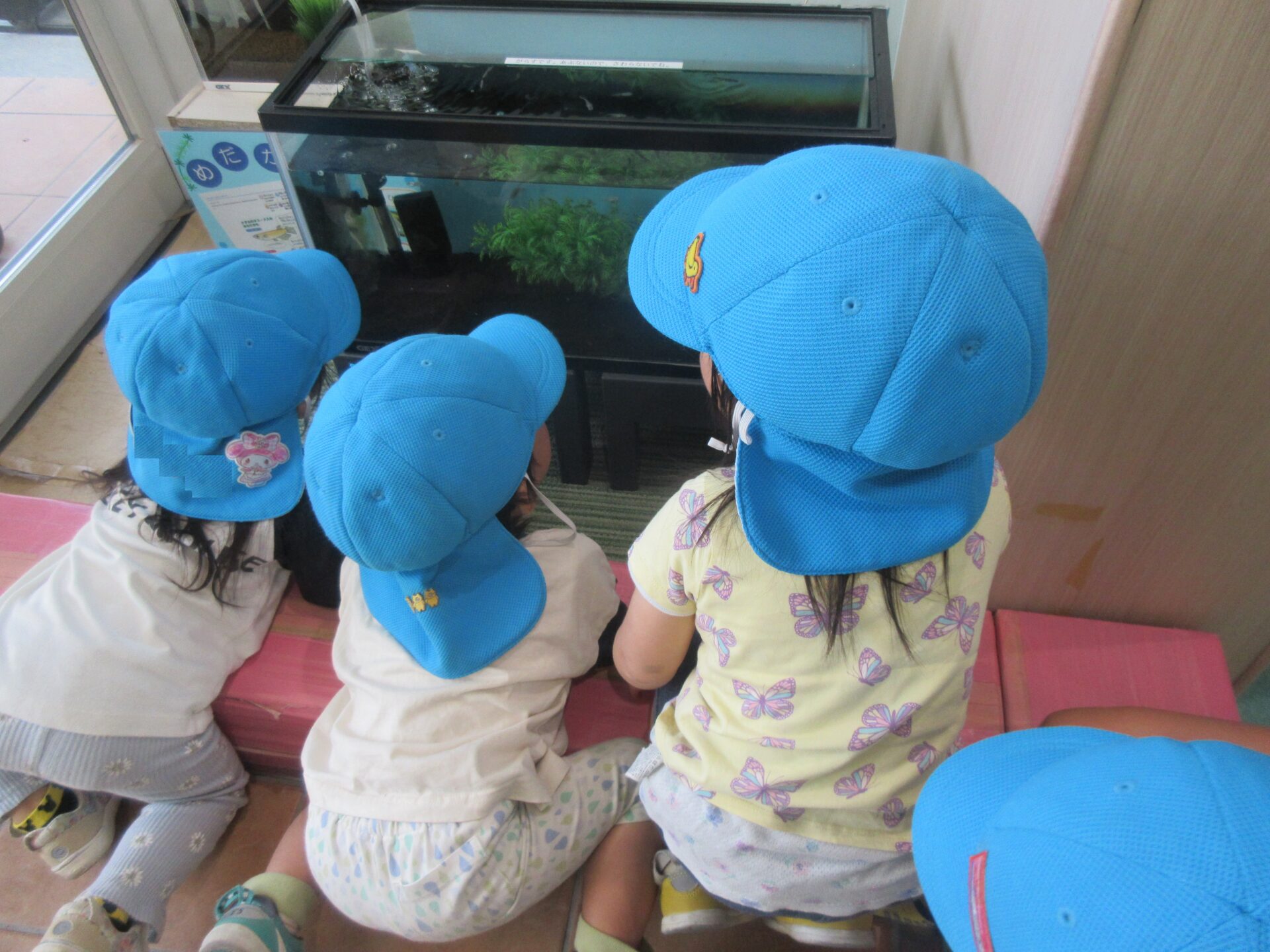 また、散歩帰りの2歳児さんは、水槽を覗き込んで「増えてる!」と、仲間が増えたことにちゃんと気付いてくれました。
