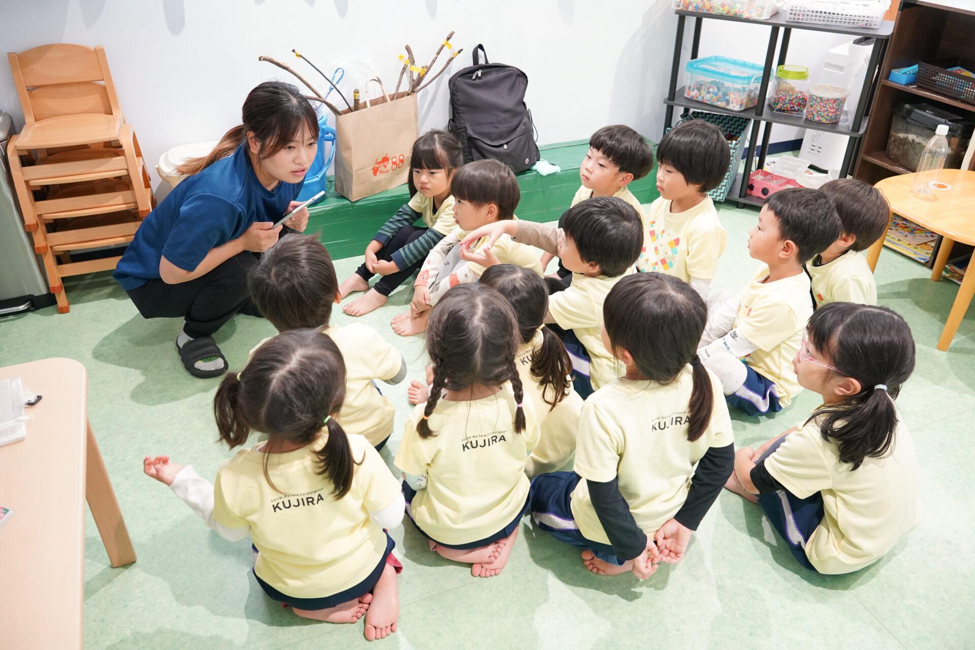 「触らない」と言っていたお友だちも触れるようになって、また一つ成長を見せてくれたひと時でした。