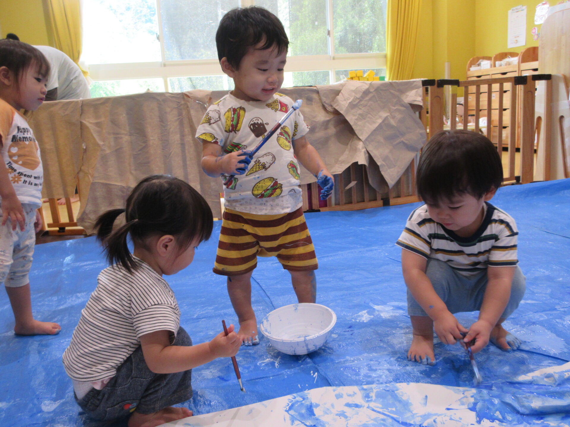 そのうちに、ひとりのお友だちが絵の具を触り出すと…